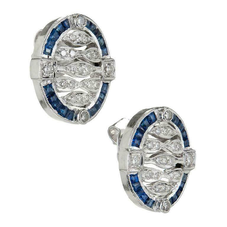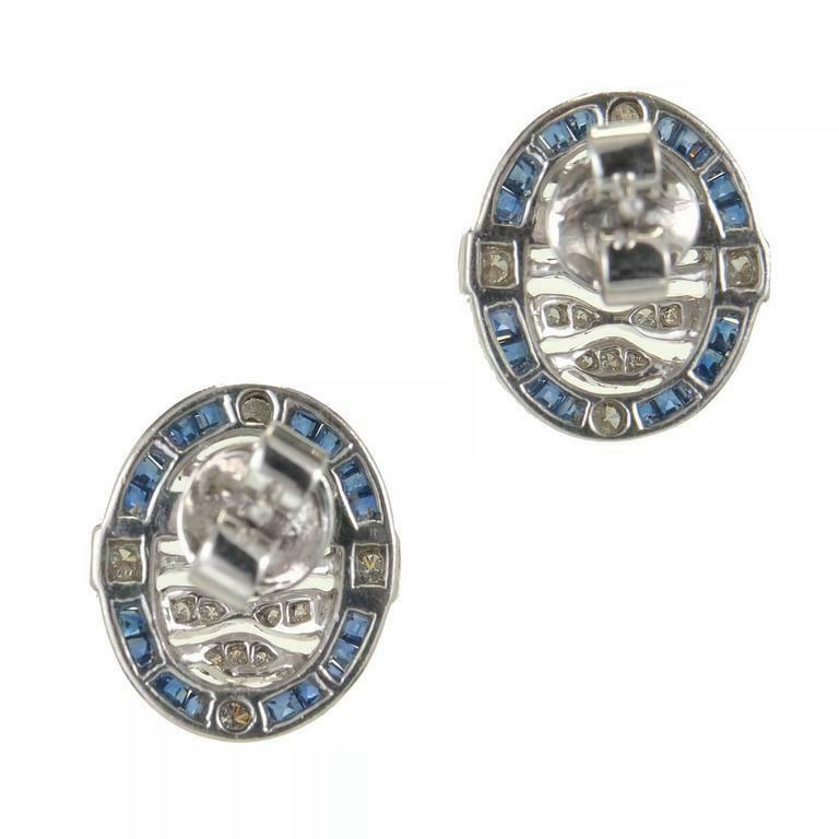 2ct Round Cut Diamond Blue Sapphire Halo Stud Earrings 14k White Gold Finish