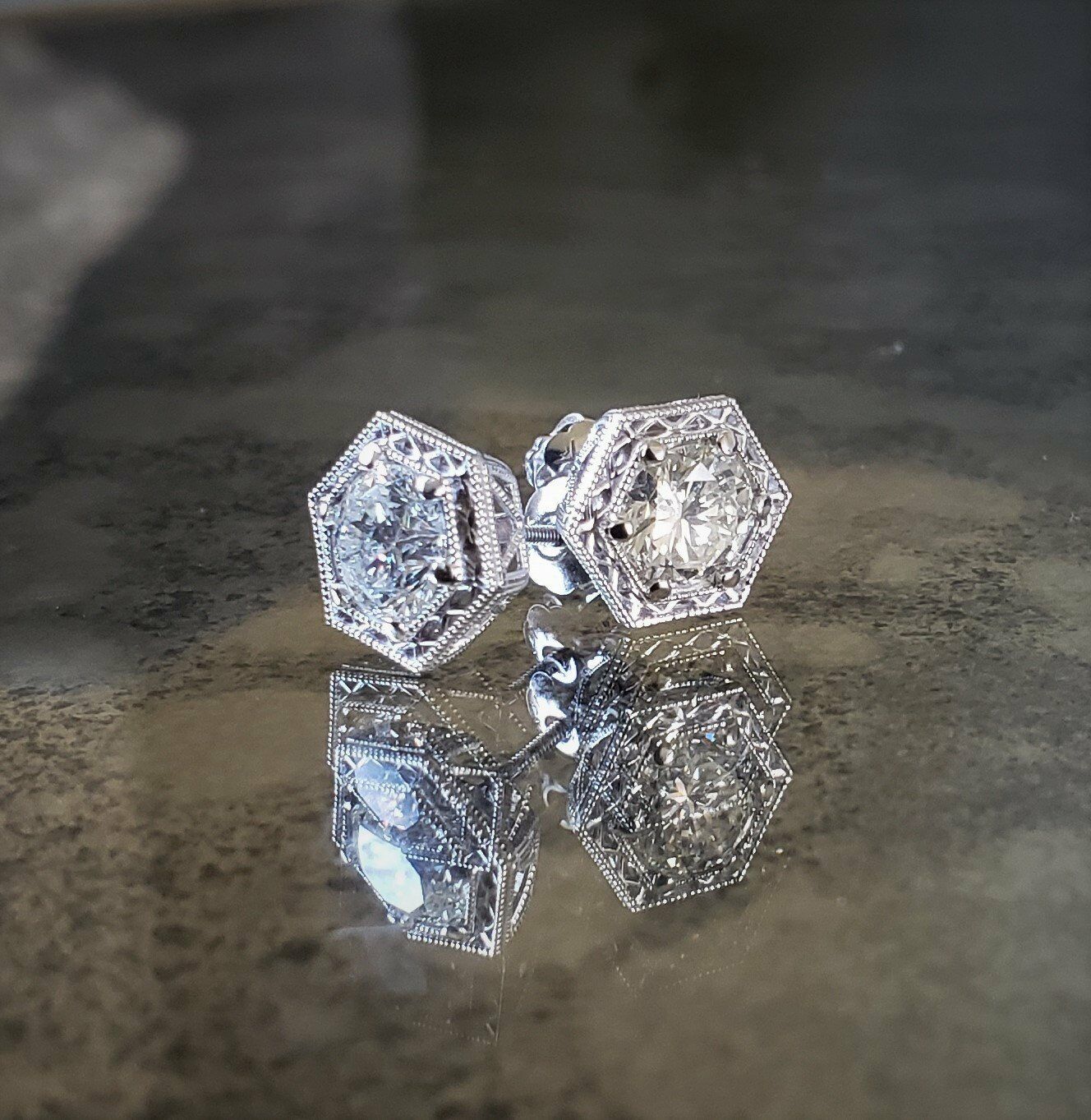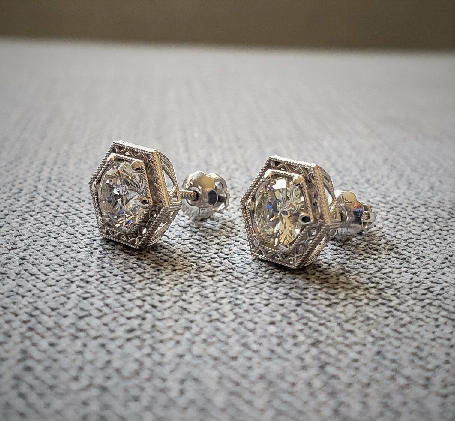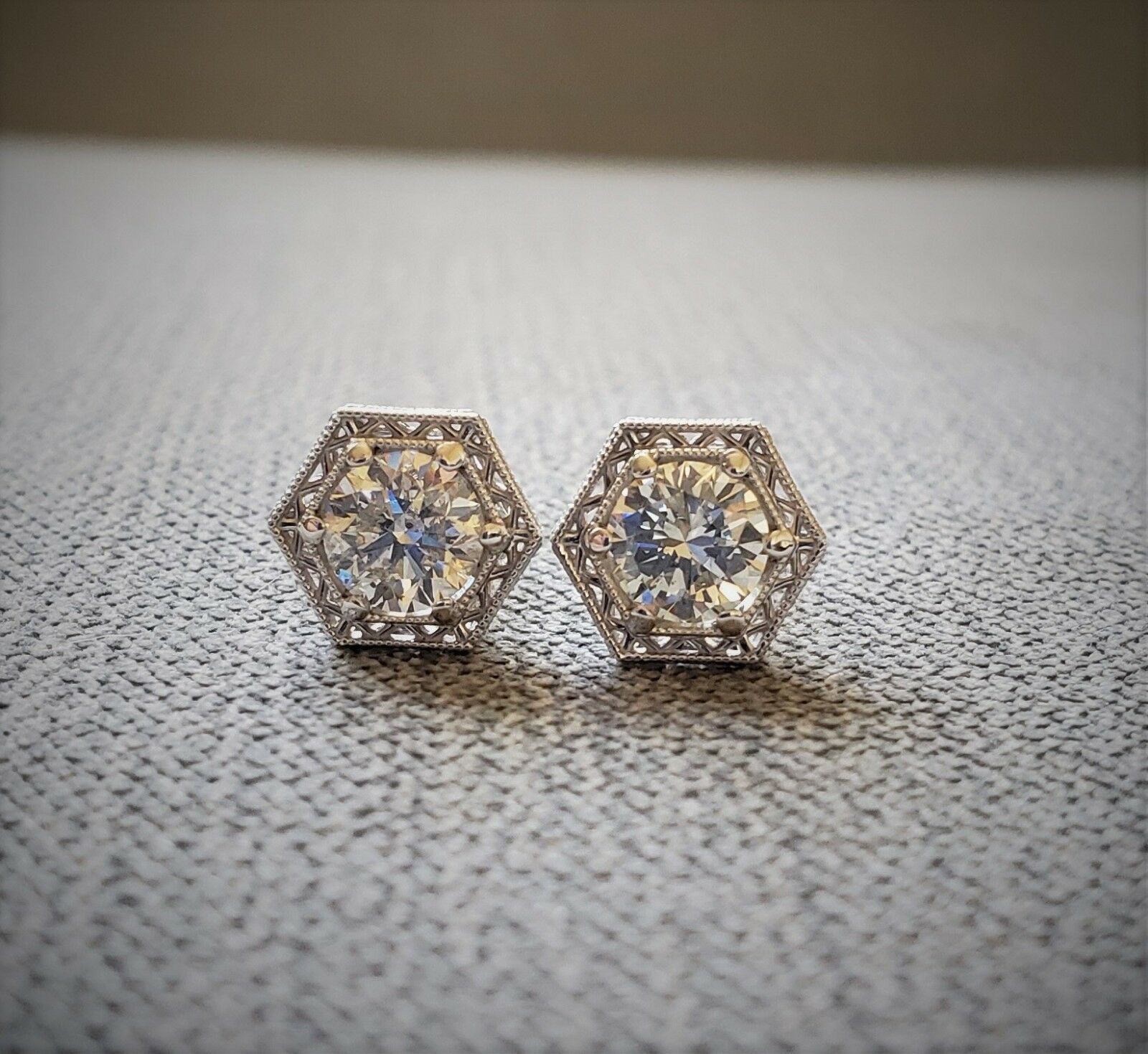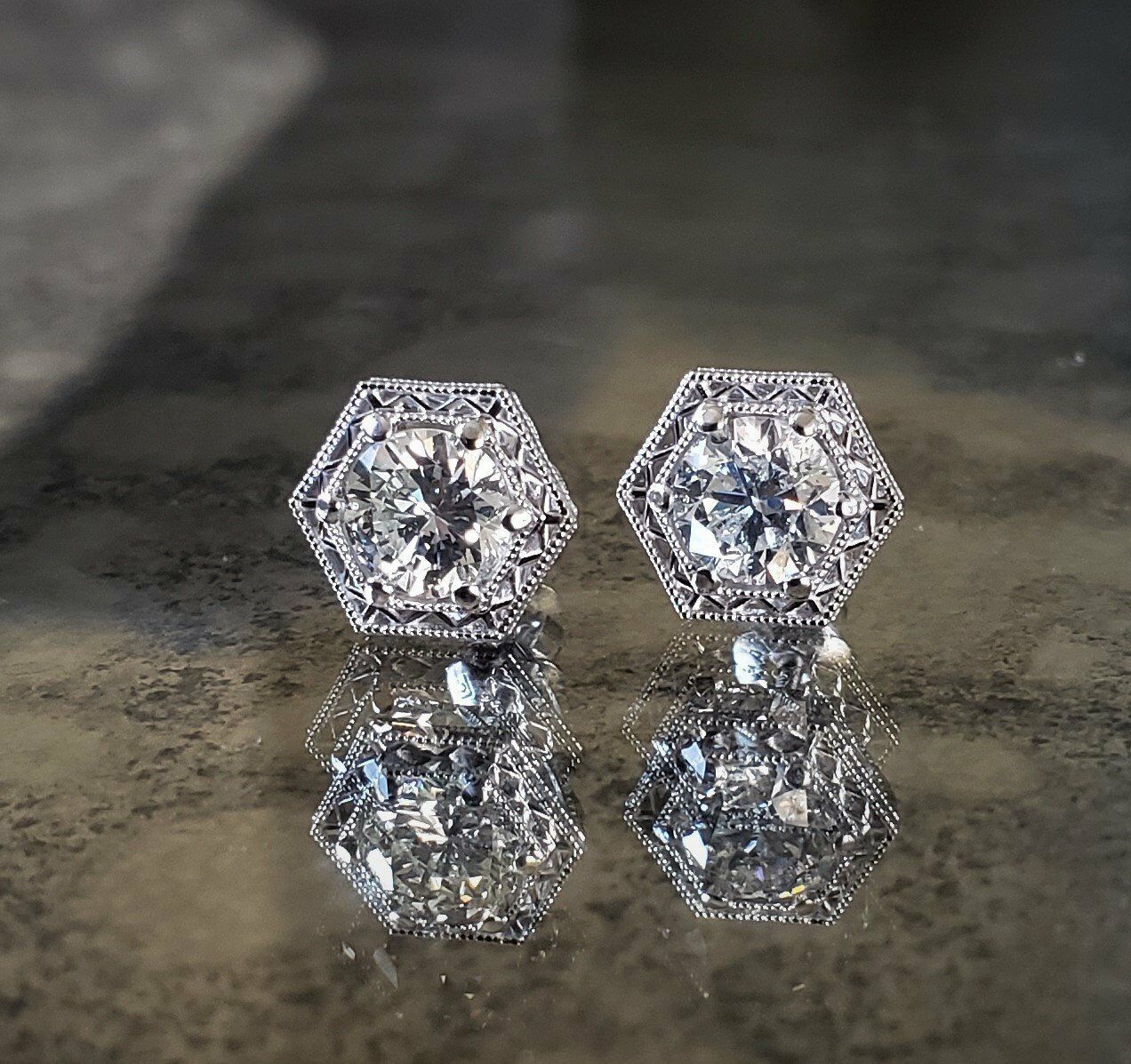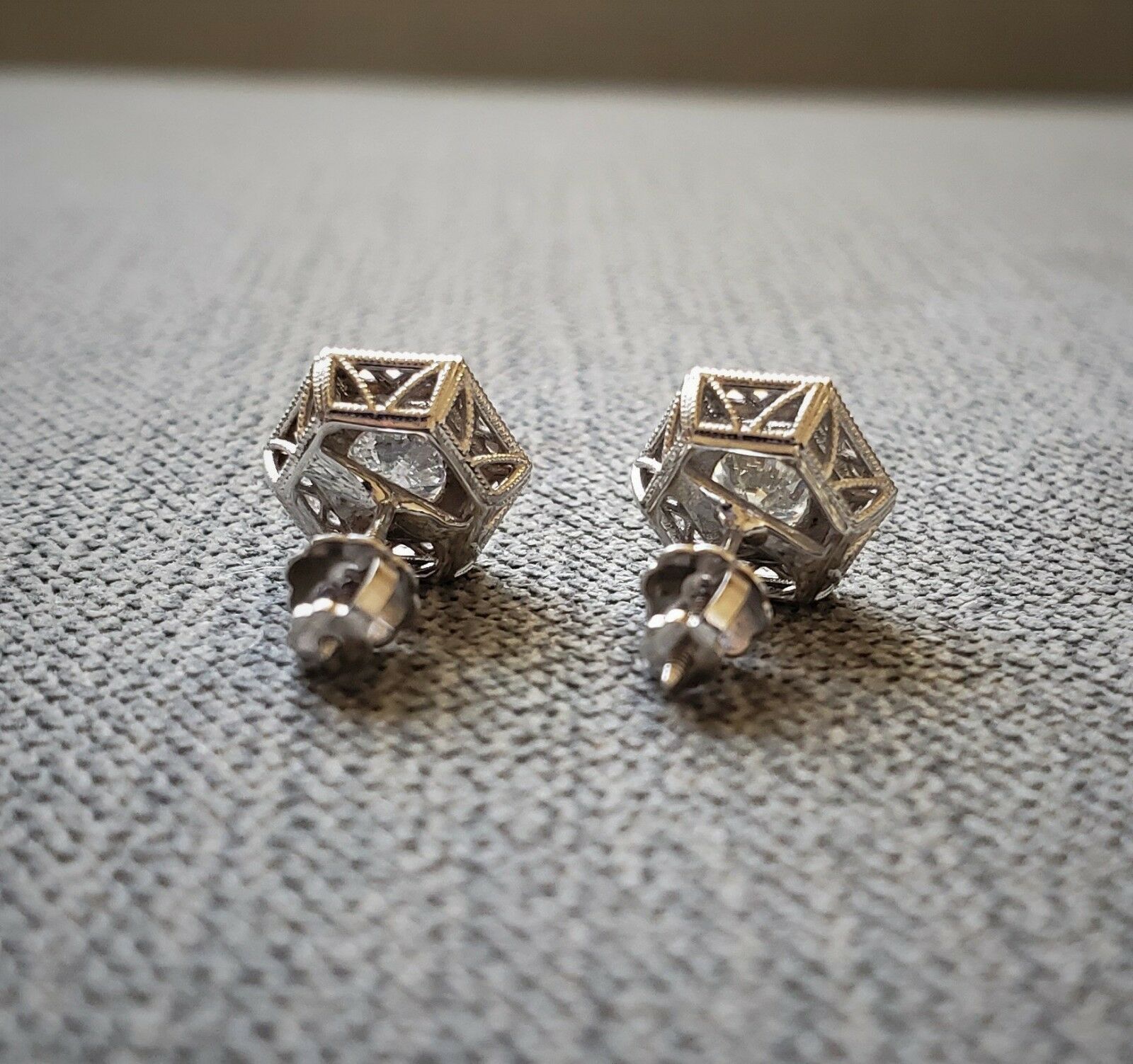 2Ct Round Cut Diamond Vintage Milgrain Stud Earrings Women 14K White Gold Finish