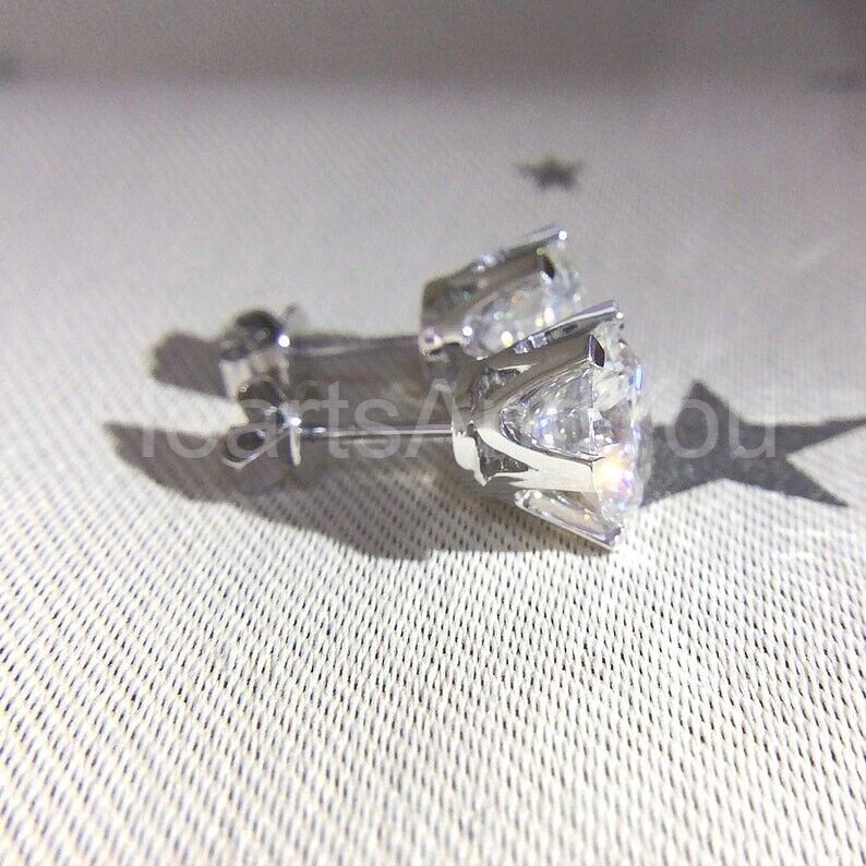 2ct Round Cut Moissanite 6 Prong Solitaire Stud Earrings 14K White Gold Plated