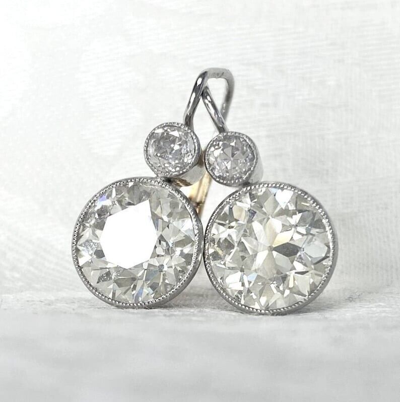 2ct Round Cut Moissanite Bezel Set Drop Earrings For Women 14k White Gold Plated
