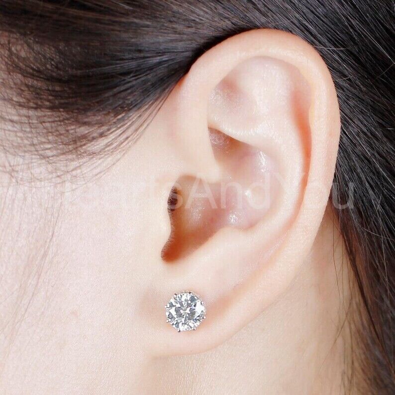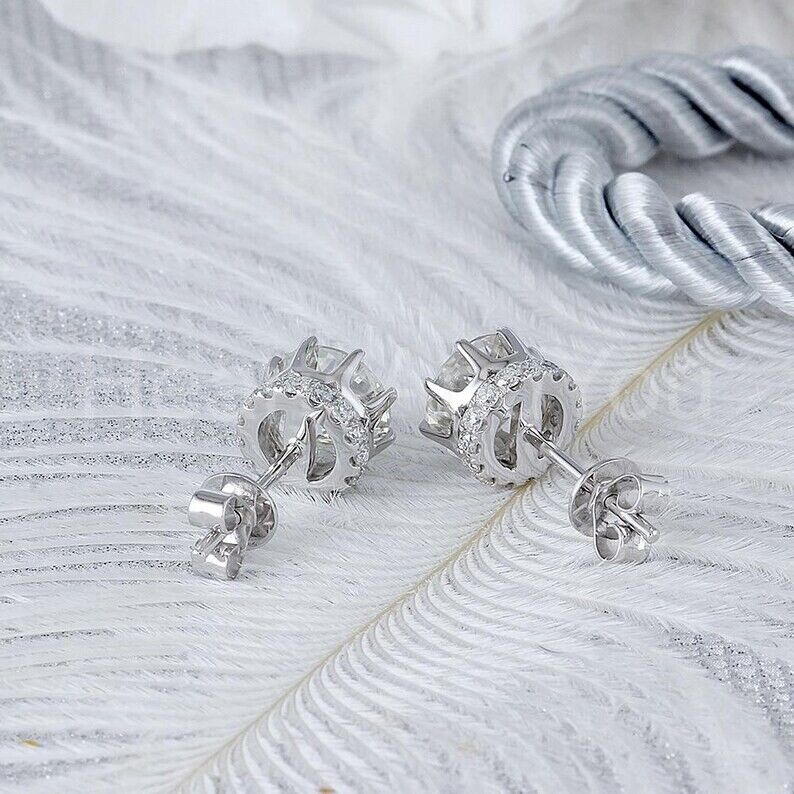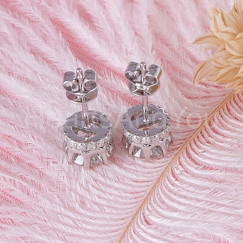 2ct Round Cut Moissanite Hidden Halo Women Stud Earrings 14k White Gold Plated
