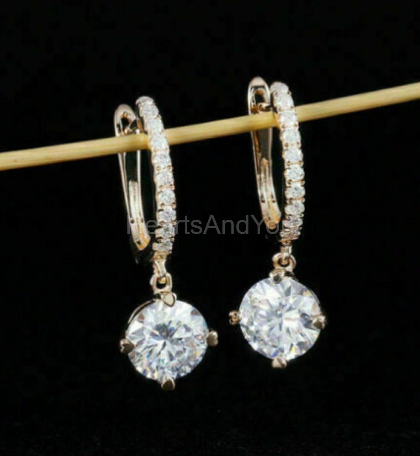 2ct Round Cut Moissanite Latch Back Drop Dangle Earrings 14k Yellow Gold Plated