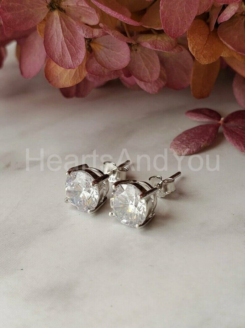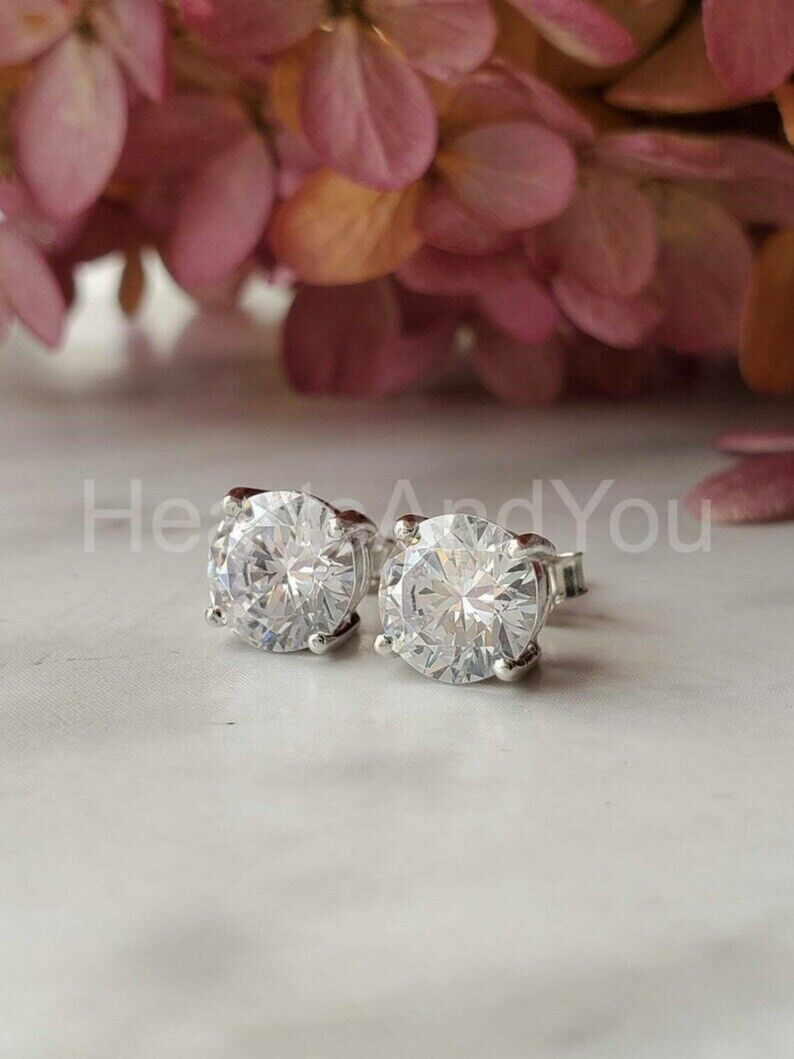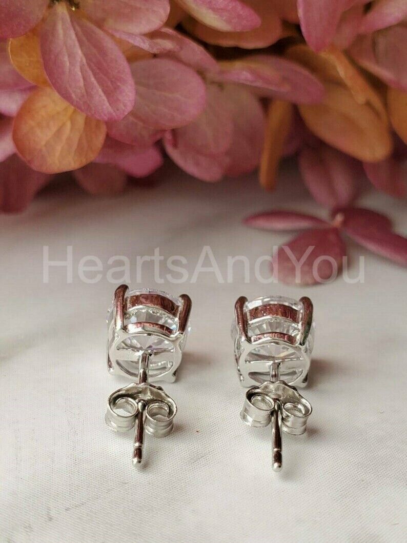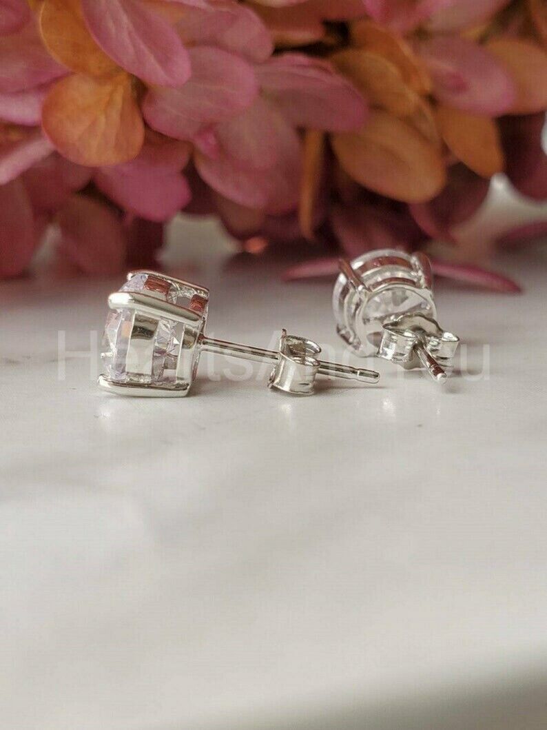 2ct Round Cut Moissanite Push Back Stud Earrings For Women 14k White Gold Plated