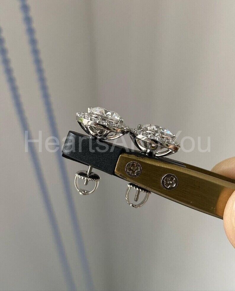 2ct Round Cut Moissanite Removable Halo Stud Women Earring 14k White Gold Plated