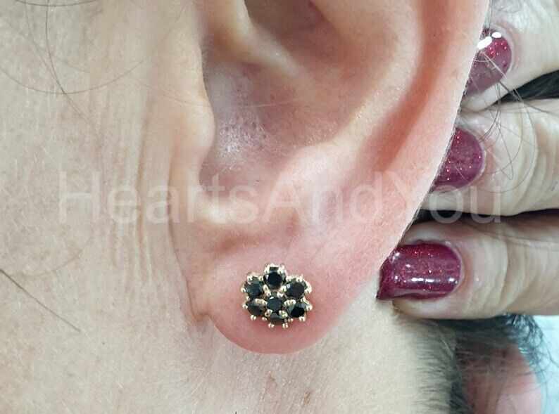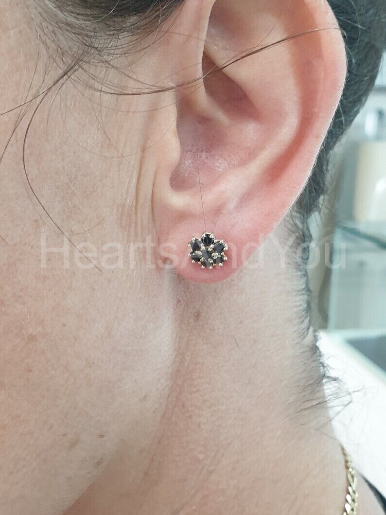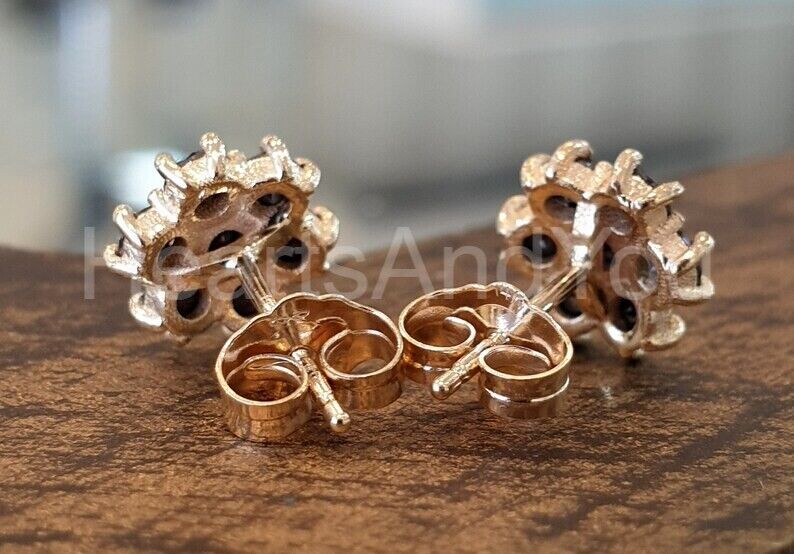 2ct Round Cut Simulated Black Diamond Floral Stud Earrings 14k Yellow Gold Plated