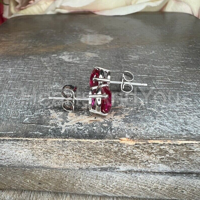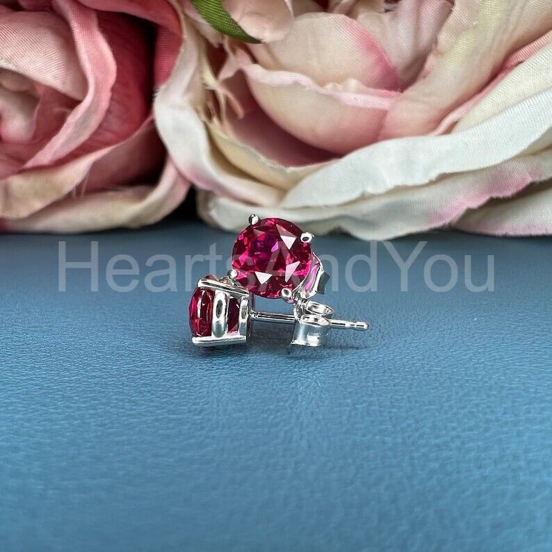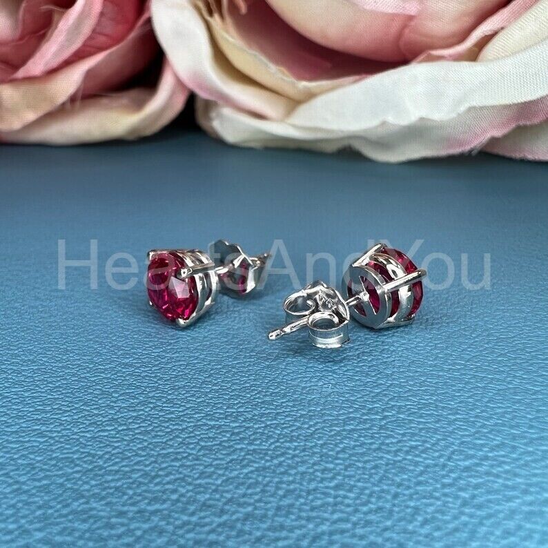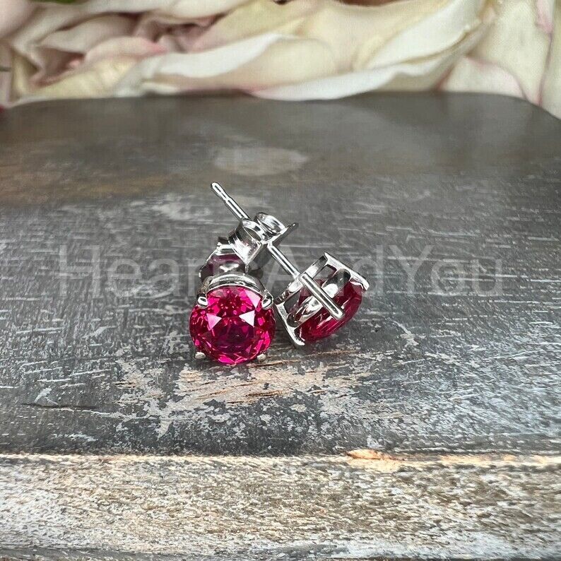 2ct Round Cut Simulated Pink Ruby Solitaire Stud Earrings 14k White Gold Plated