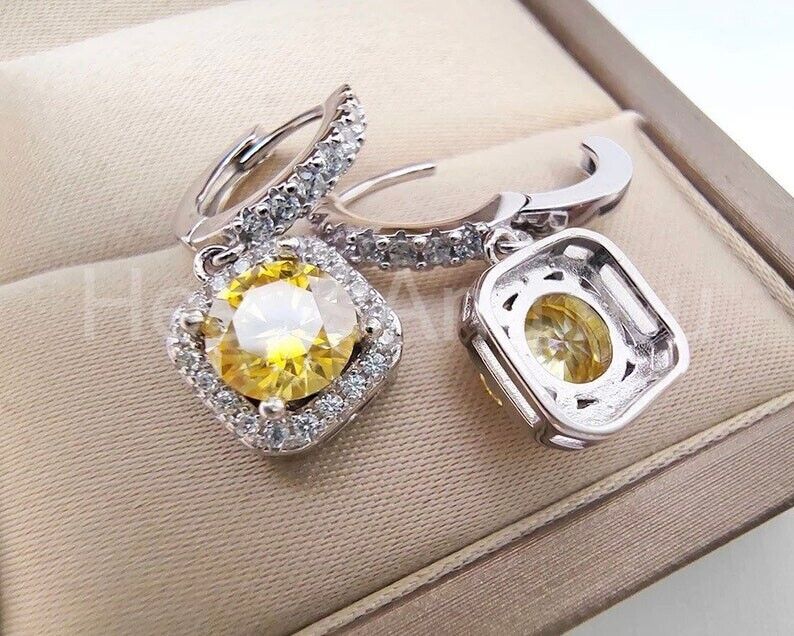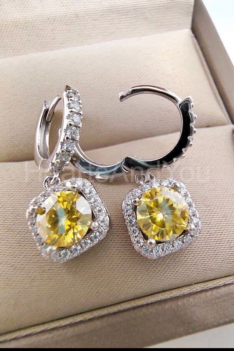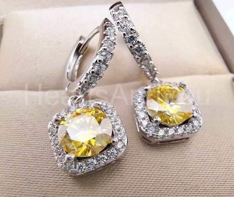 2ct Round Cut Simulated Yellow Sapphire Halo Dangle Earring 14k WhiteGold Plated