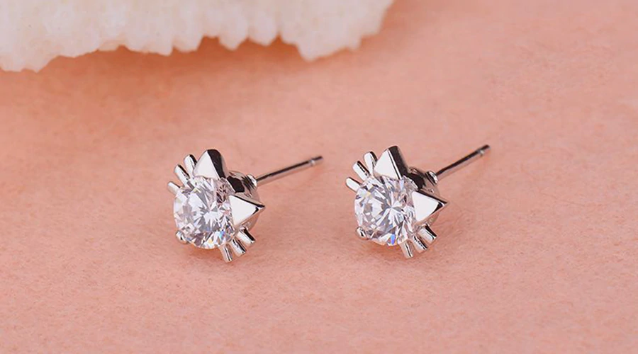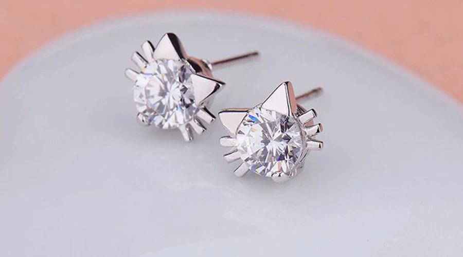 2ct Round Cut VVS1 Diamond Cat Animal Design Stud Earrings 14k White Gold Finish