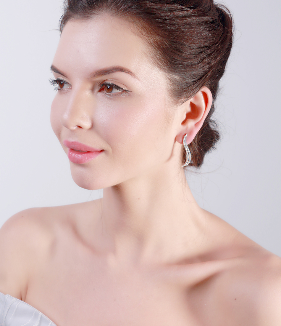 2ct Round Cut VVS1 Diamond Caterpillar Shape Drop Earrings 14k White Gold Finish