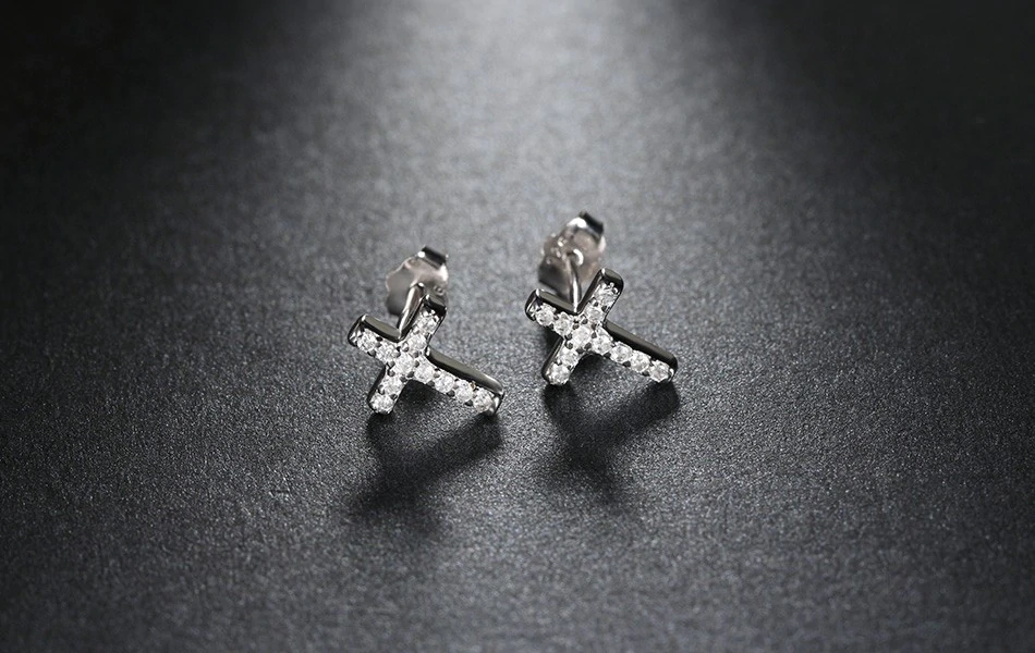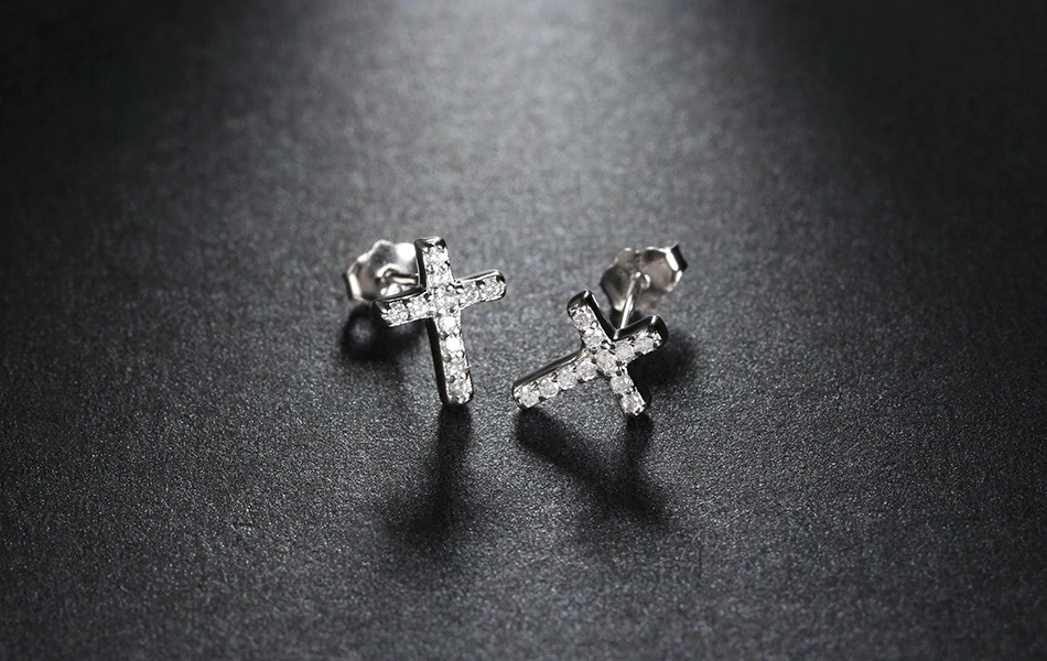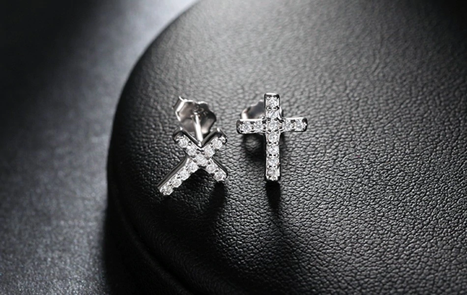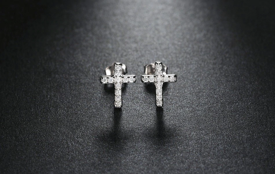 2ct Round Cut VVS1 Diamond Small Cross Design Stud Earrings 14k WhiteGold Finish