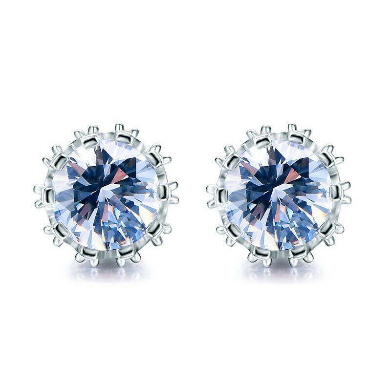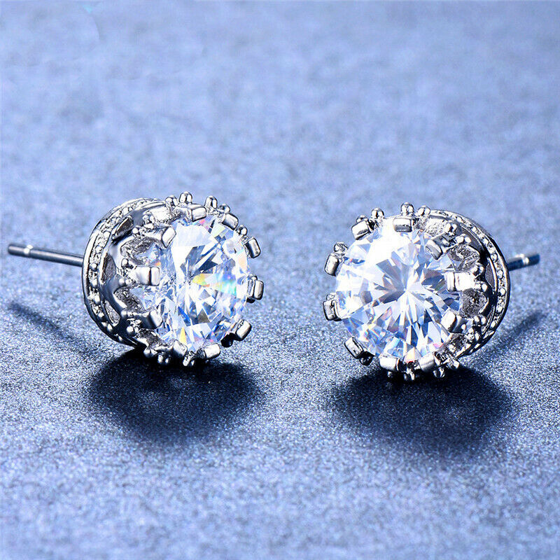 2ct Round Cut VVS1D Diamond Crown for Women Stud Earrings 14k White Gold Finish