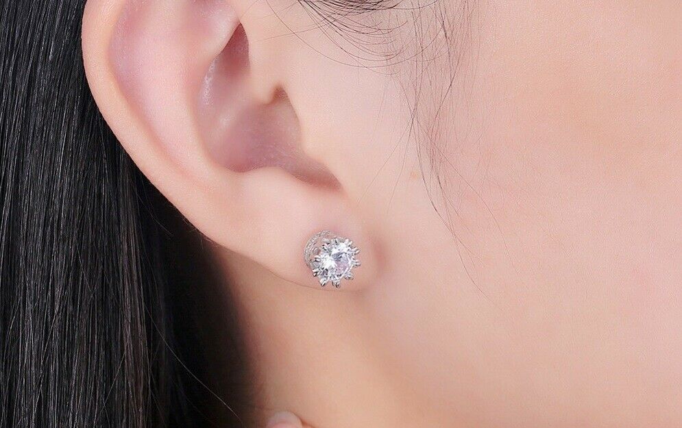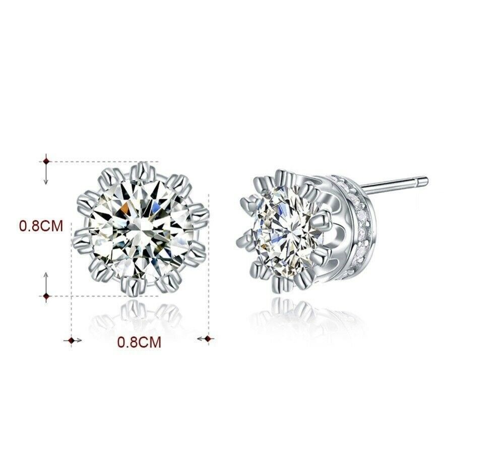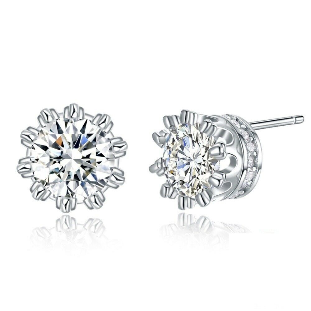 2ct Round Cut VVS1D Diamond Crown Solitaire Stud Earrings 14k White Gold Finish