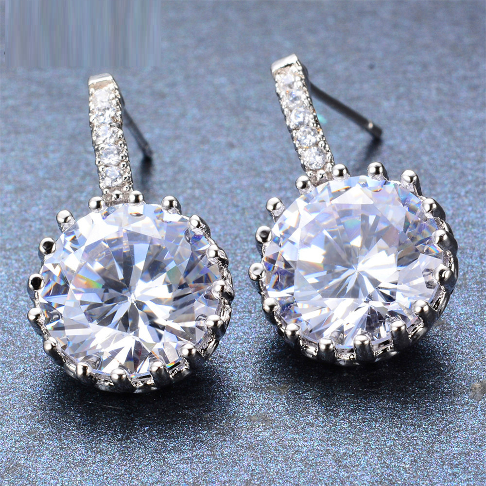 2ct Round Cut VVS1D Diamond Fancy Stylish Drop Earrings 14k White Gold Finish