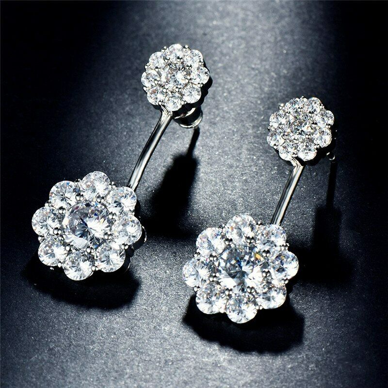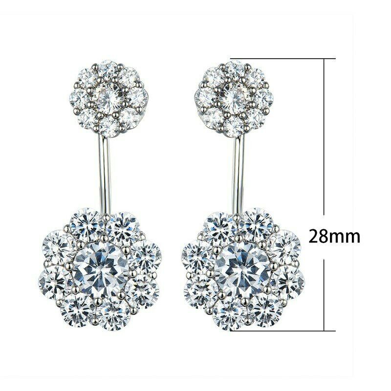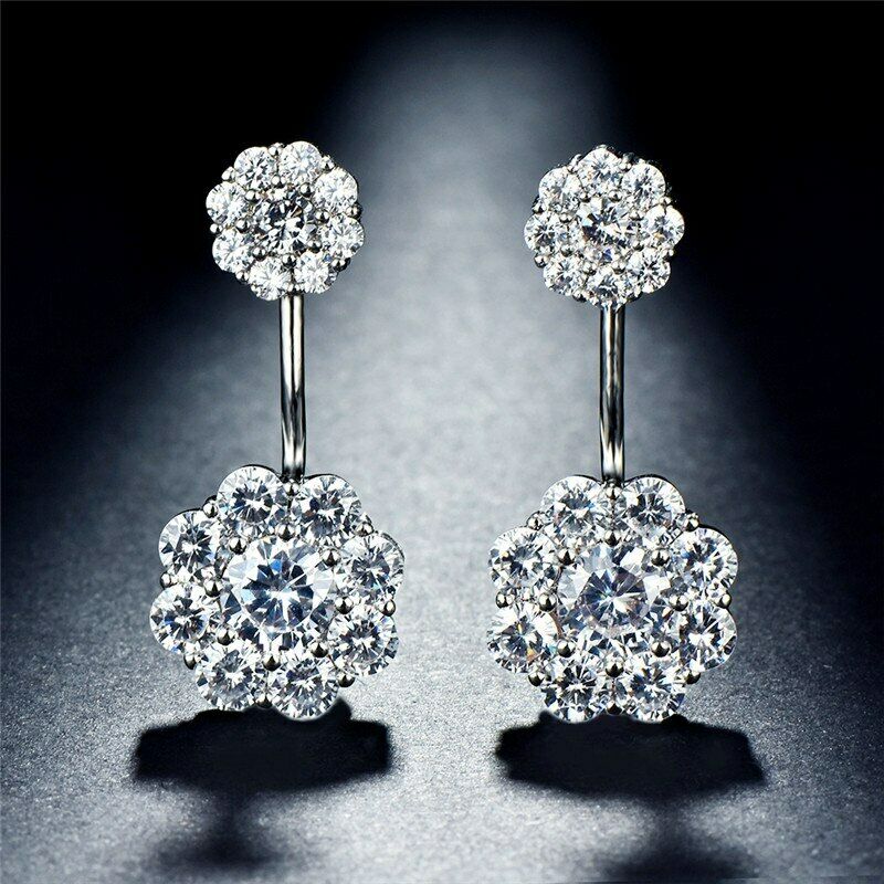 2ct Round Cut VVS1D Diamond Flower Statement Drop Earrings 14k White Gold Finish