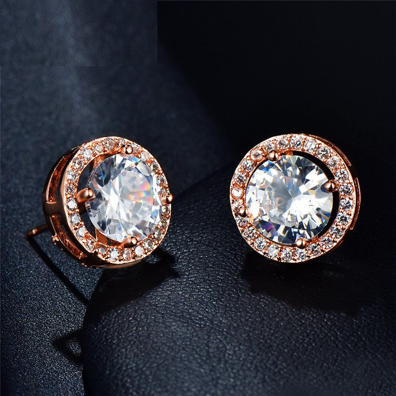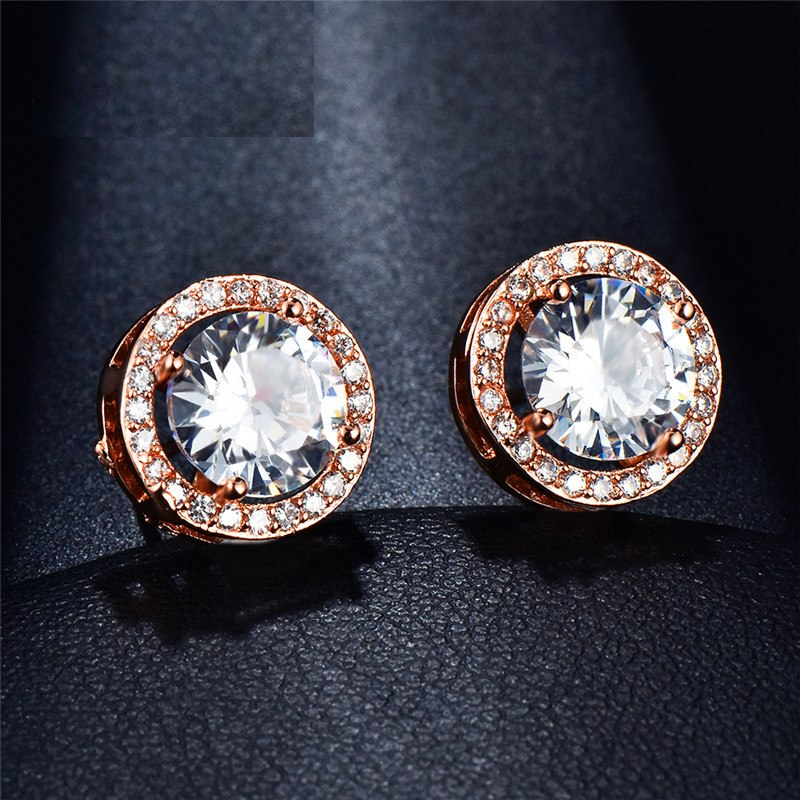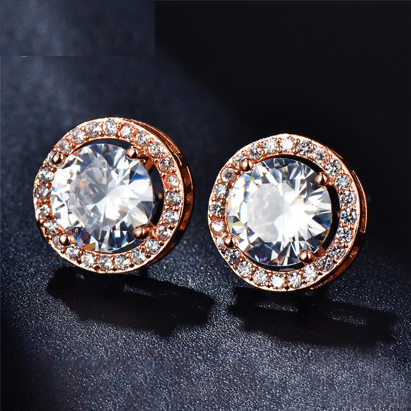 2ct Round Cut VVS1D Diamond Halo Solitaire Stud Earrings 14k Rose Gold Finish