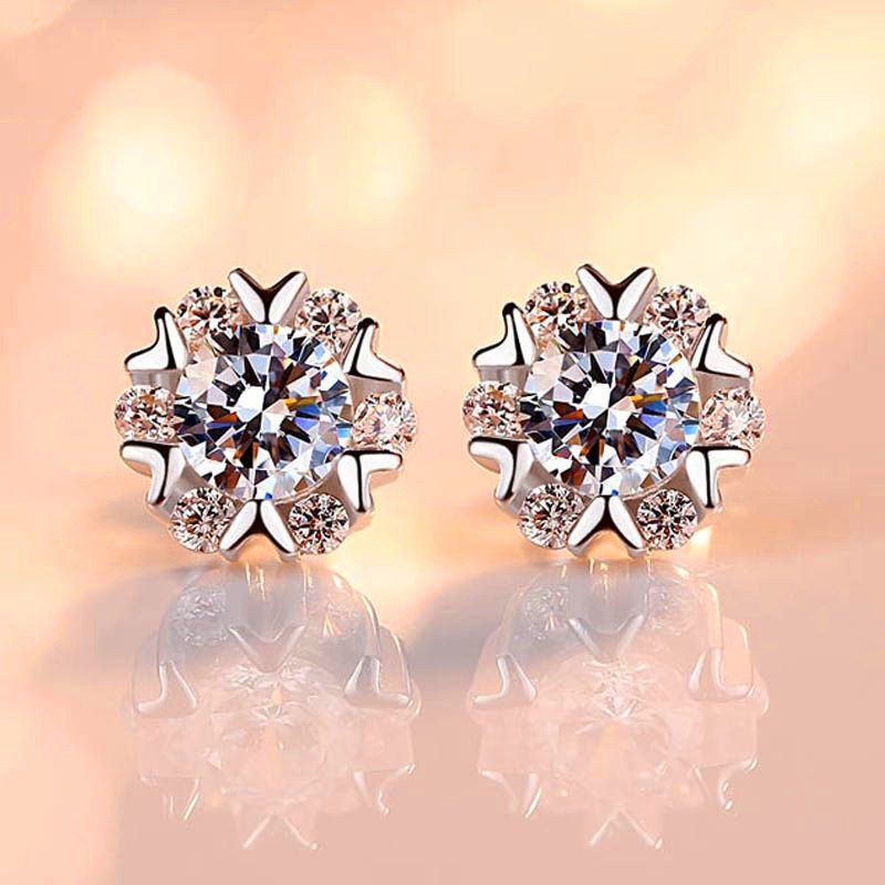 2ct Round Cut VVS1D Diamond Snowflake Design Stud Earrings 14k White Gold Finish