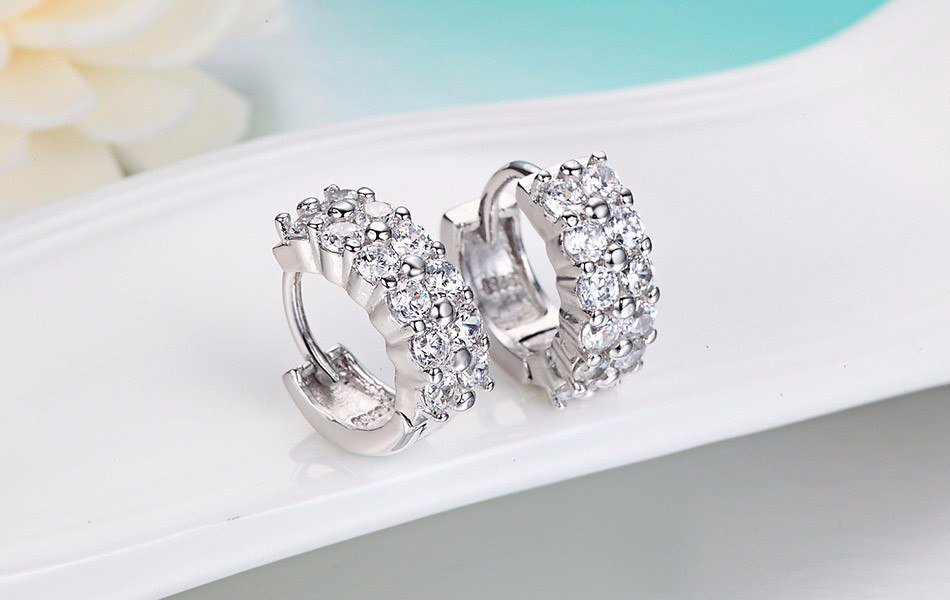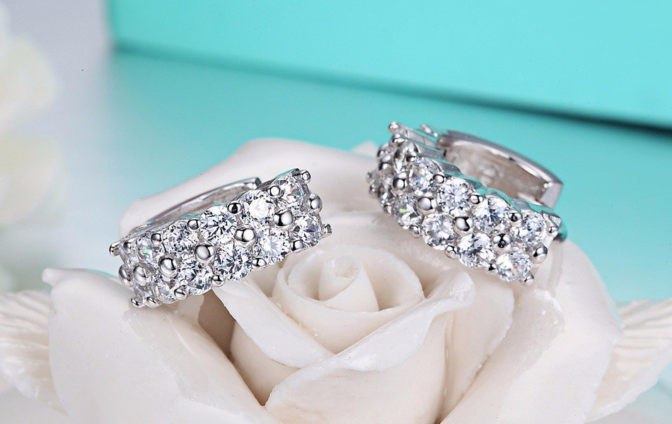 2ct Round Cut VVS1D Diamond Two Row Design Hoop Earrings 14k White Gold Finish
