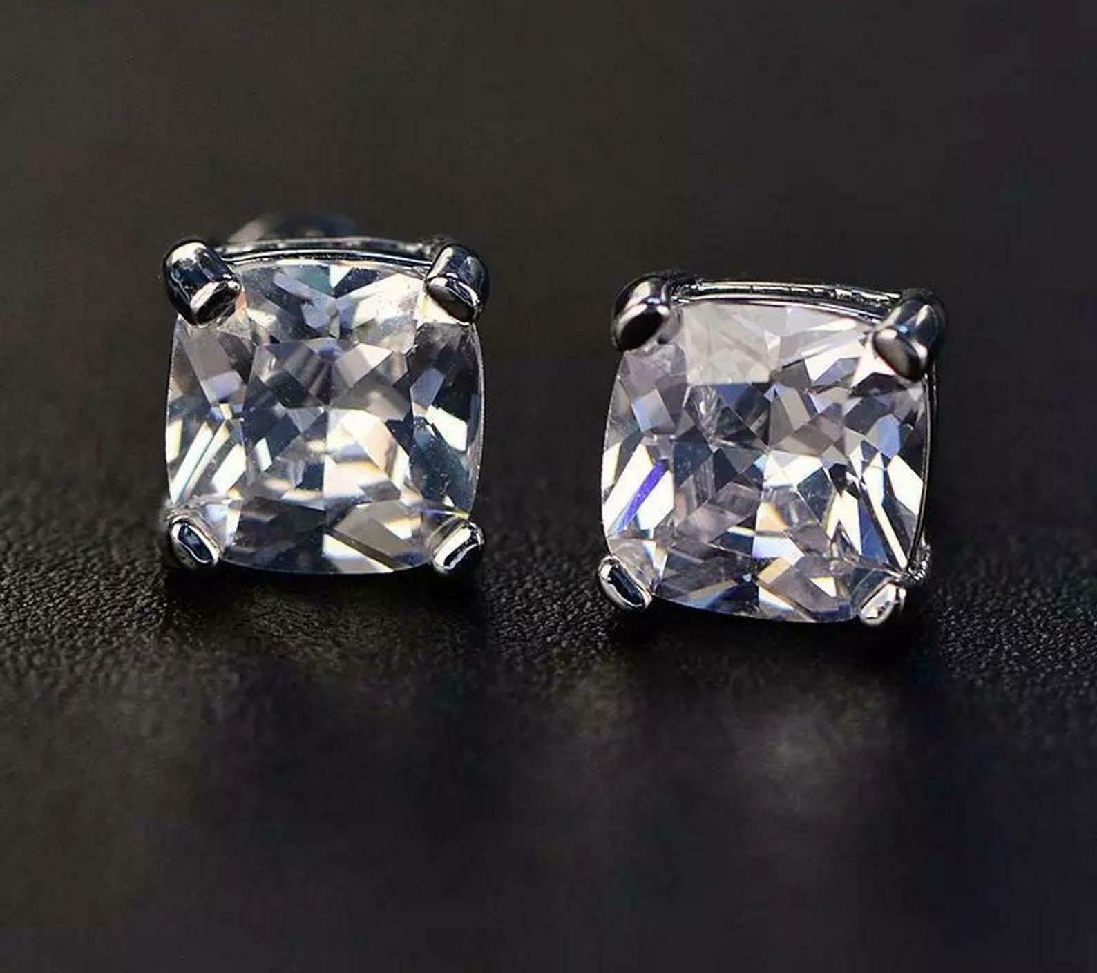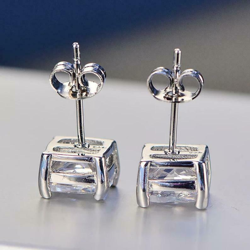 2ct Stud Earrings Cushion Cut Diamond Solitaire Women 14k White Gold Finish