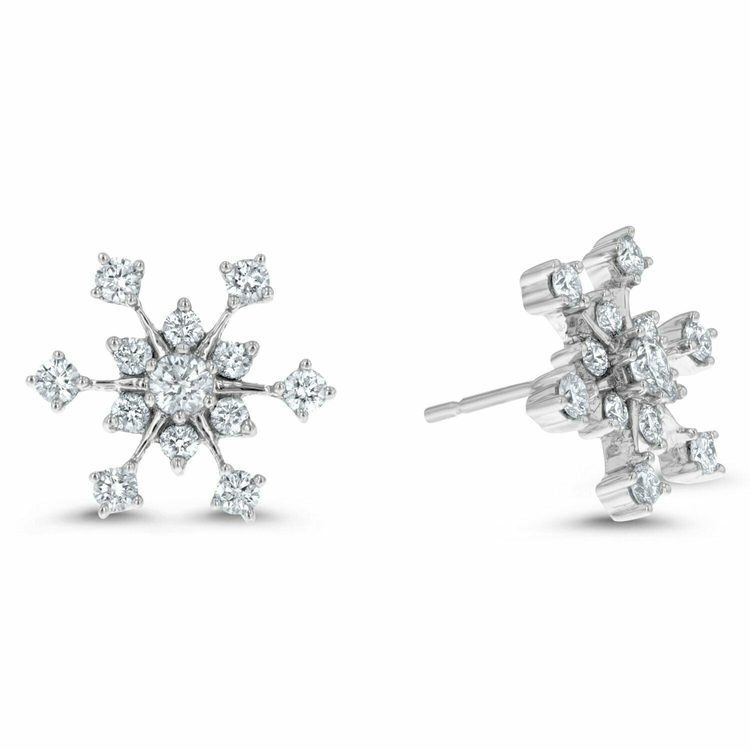 2ct Stud Earrings Round Cut Diamond Snowflake Design 14k White Gold Finish