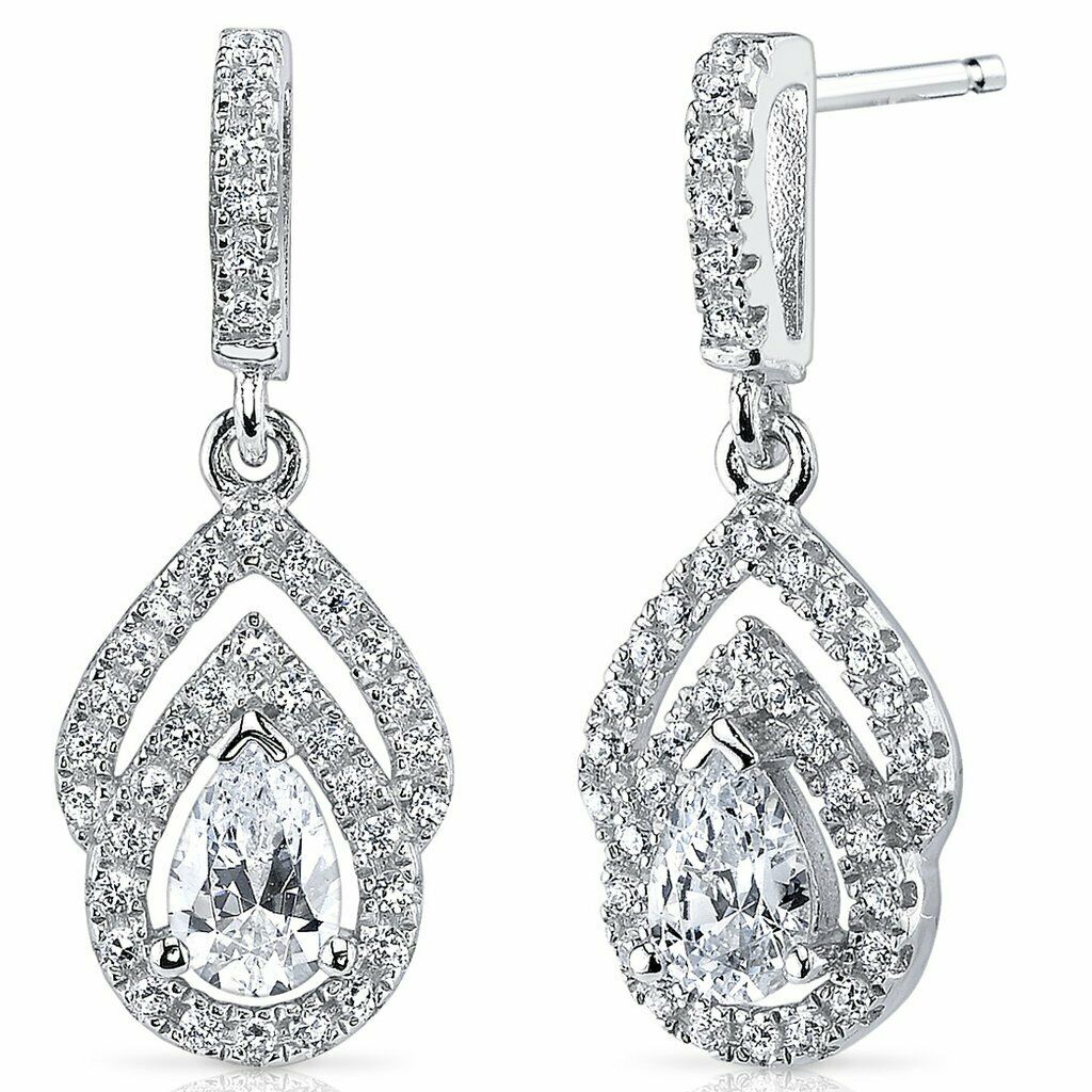 3.8Ct Pear Cut Diamond Halo Tear Water Drop Women Earrings 14K White Gold Finish