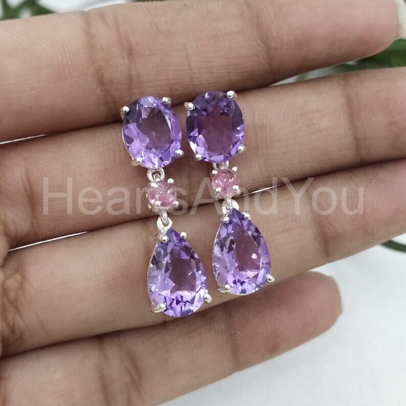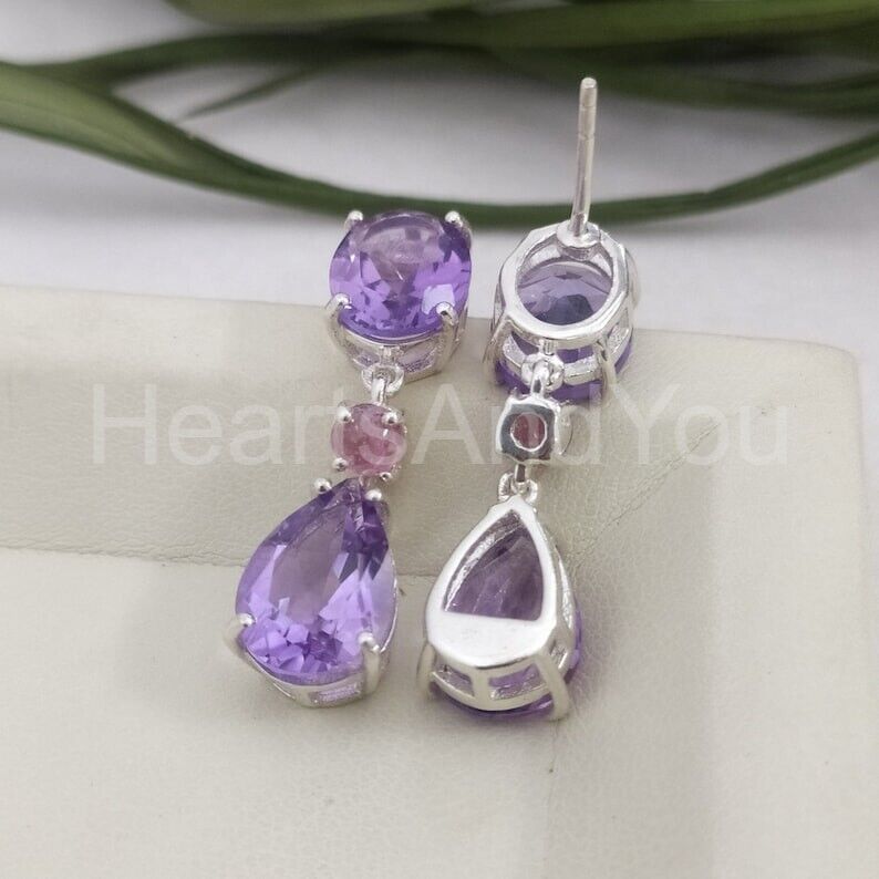 3ct Pear Cut Simulated Amethyst Anniversary Dangle Earrings 14k White Gold Plated
