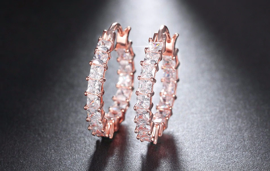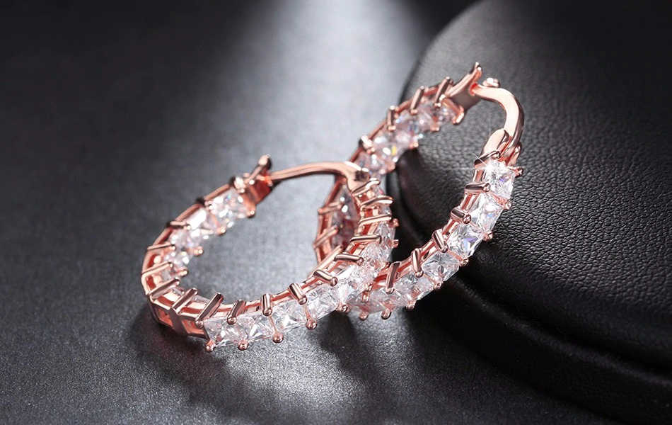 3ct Princess Cut VVS1D Diamond Unique Design Hoop Earrings 14k Rose Gold Finish