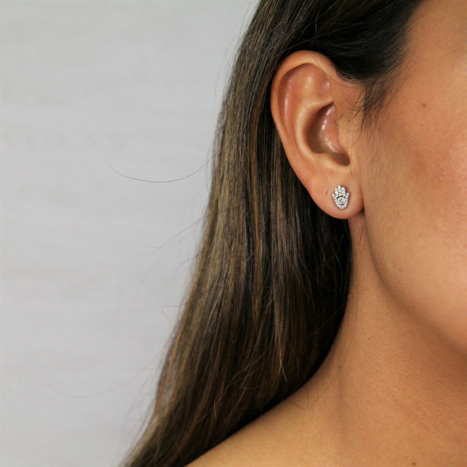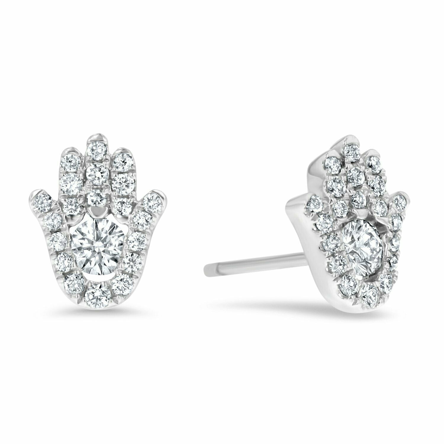 3ct Round Cut Diamond Hamsa Design Stud Earrings for Women 14K White Gold Finish