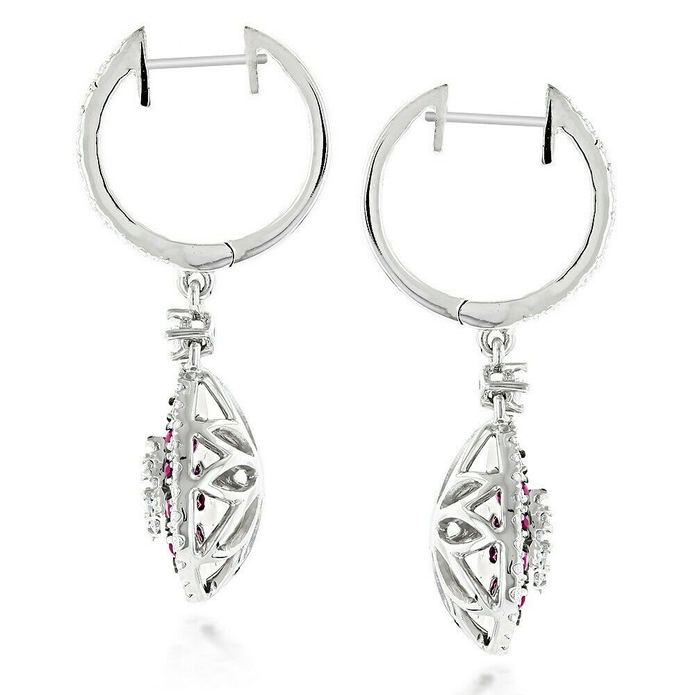 3Ct Round Cut DVVS1 Diamond Ruby Halo Tear Drop Earrings 14K White Gold Finish