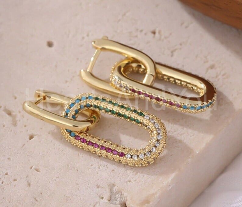 3ct Round Cut Simulated Multi Stone Geometric Double Hoop Earrings 14k Yellow Gold Plated