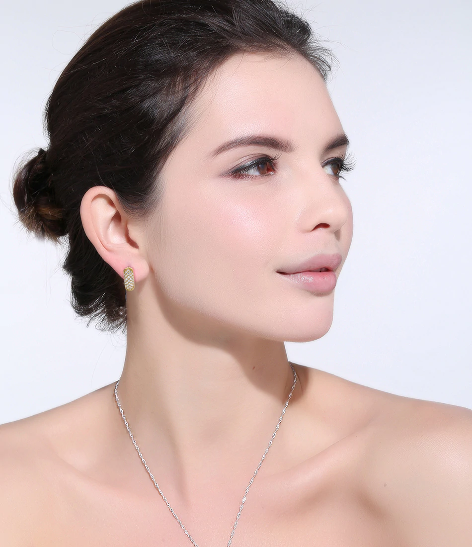 3ct Round Cut VVS1 Diamond Hollow Design Huggies Earrings 14k Yellow Gold Finish