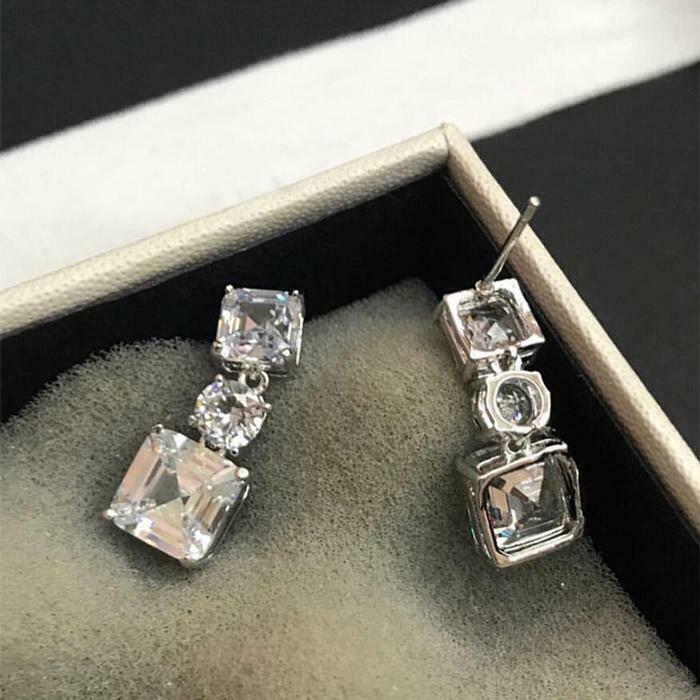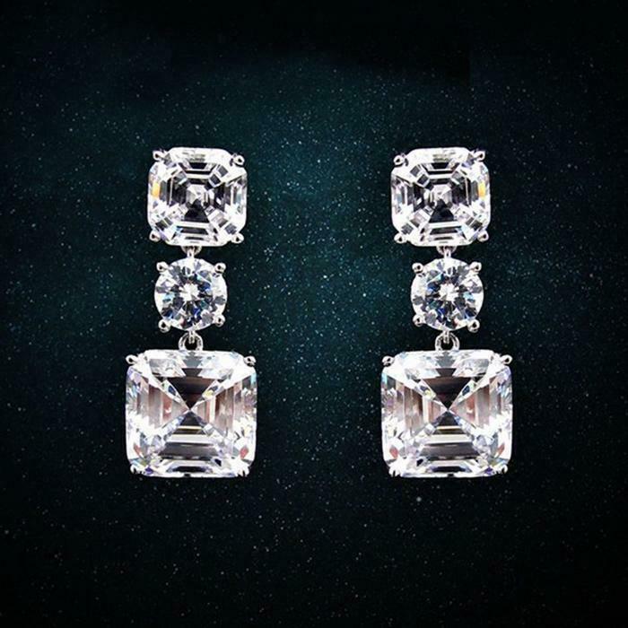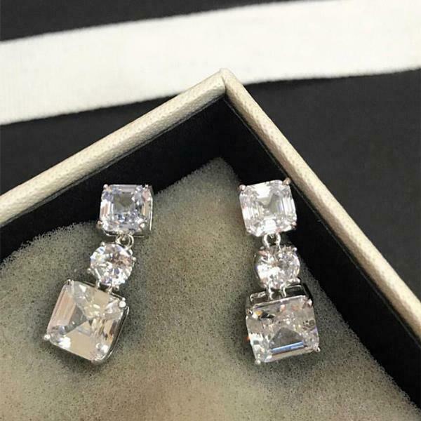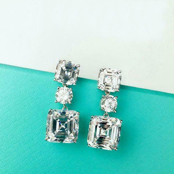 4Ct Asscher Round Cut Diamond Elegant Stylish Drop Earring 14K White Gold Finish