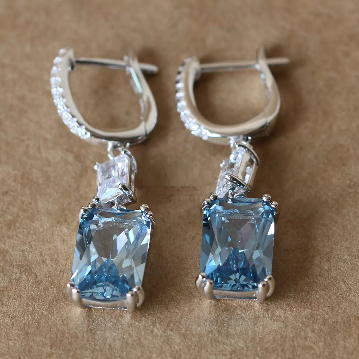 4Ct Radiant Cut Blue Aquamarine Diamond Gatsby Drop Earrings 14K White Gold Over