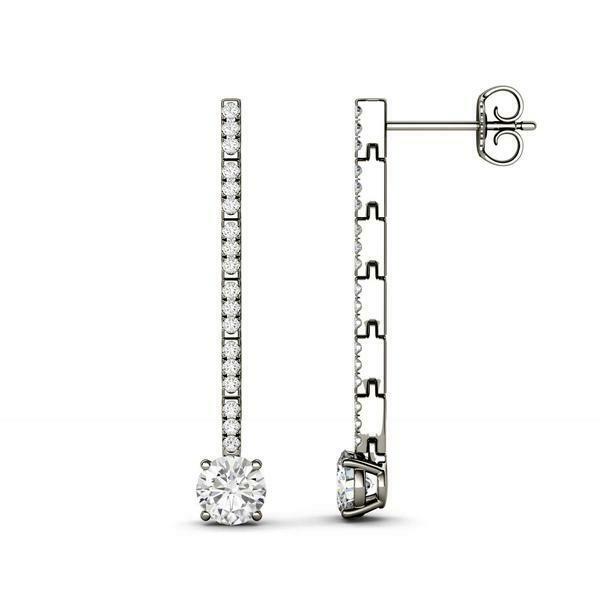 4Ct Round Cut Diamond Vertical Bar Thin Drop Earrings 14K White Gold Finish