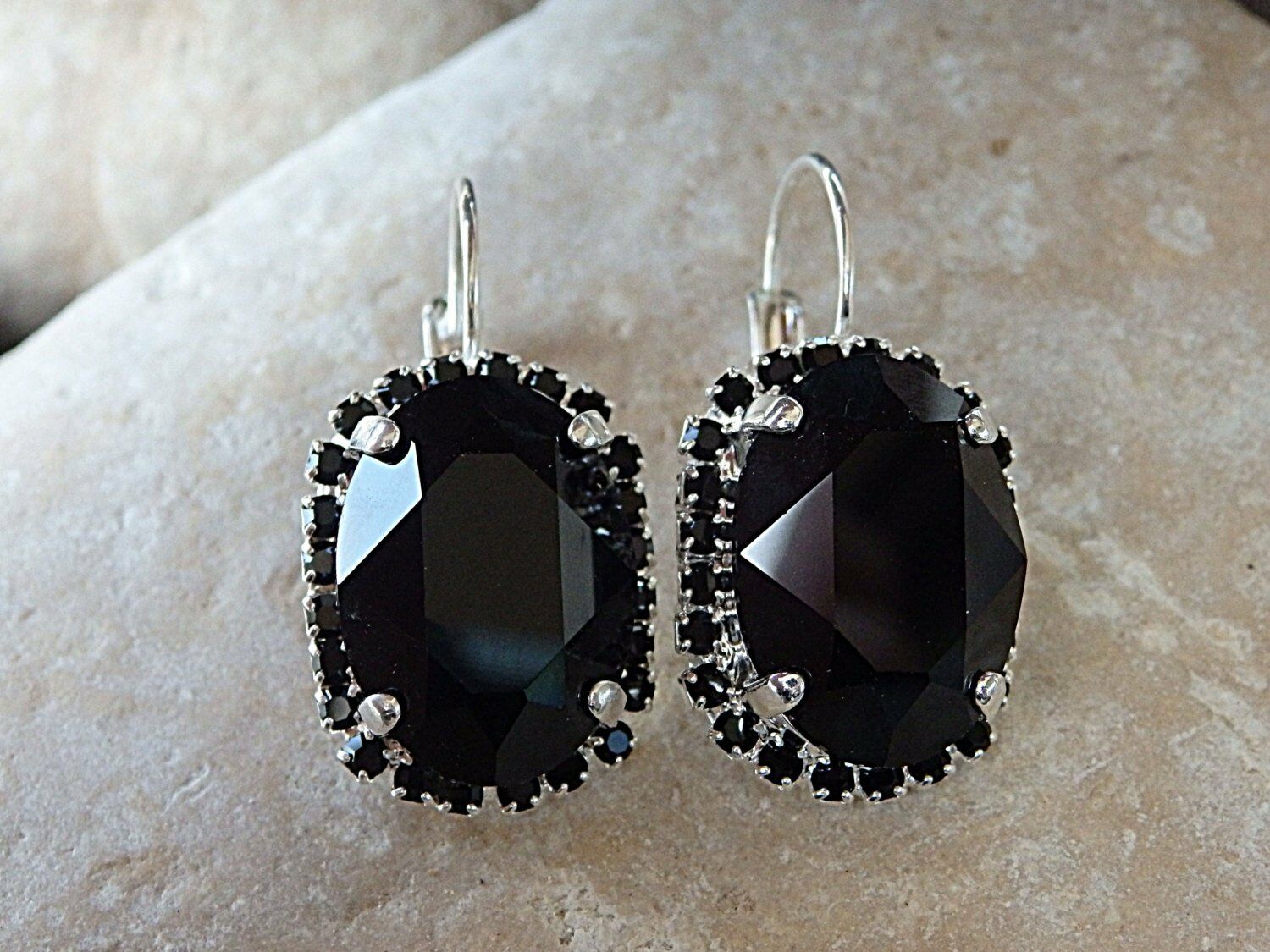 5ct Oval Cut Black Diamond Halo Cocktail Drop Earrings 14k White Gold Finish