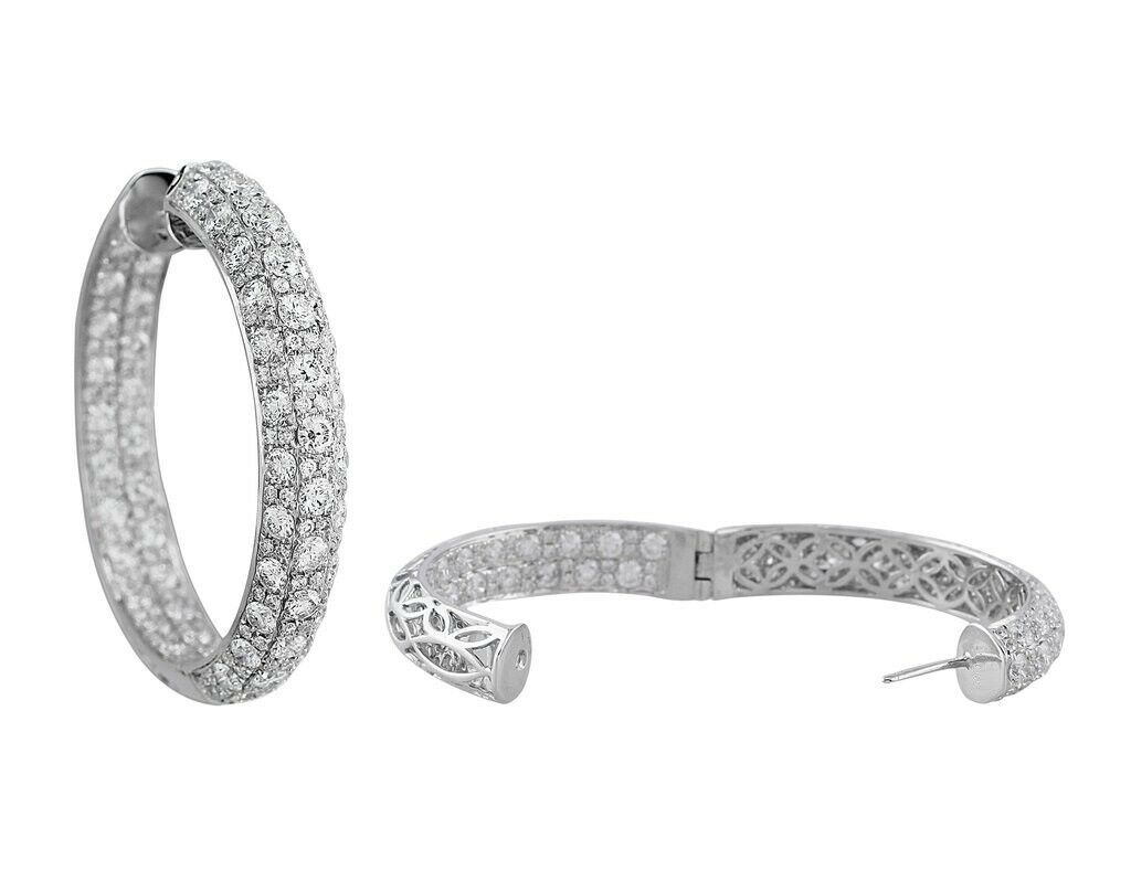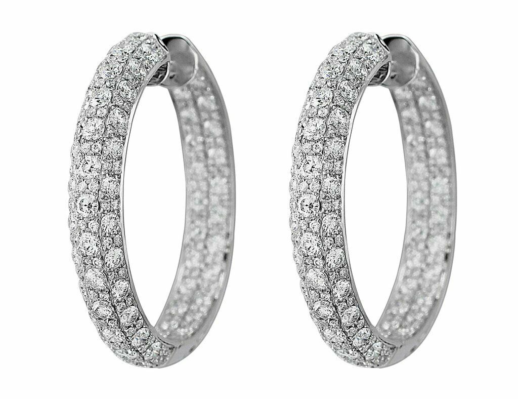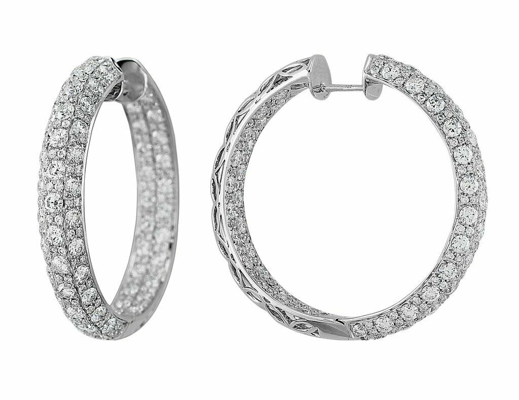 5ct Round Cut Diamond Inside Out Iced Filigree Hoop Earring 14k White Gold Over