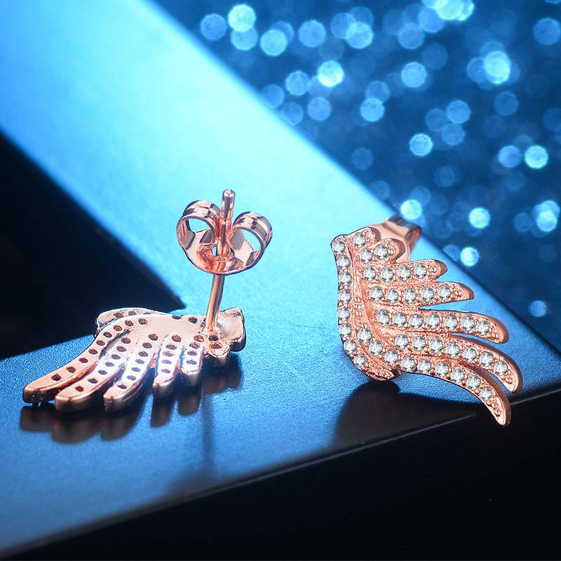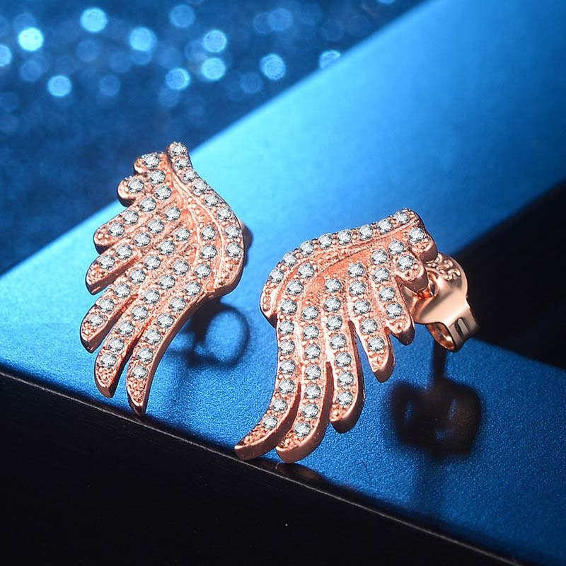 Angel Wings Stud Earrings 1.3ct Round Cut VVS1D Diamond 14k Rose Gold Finish
