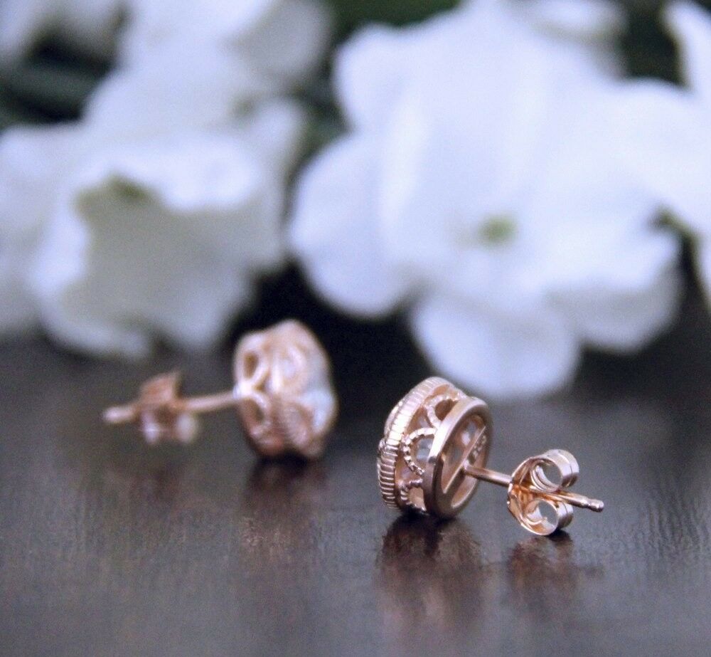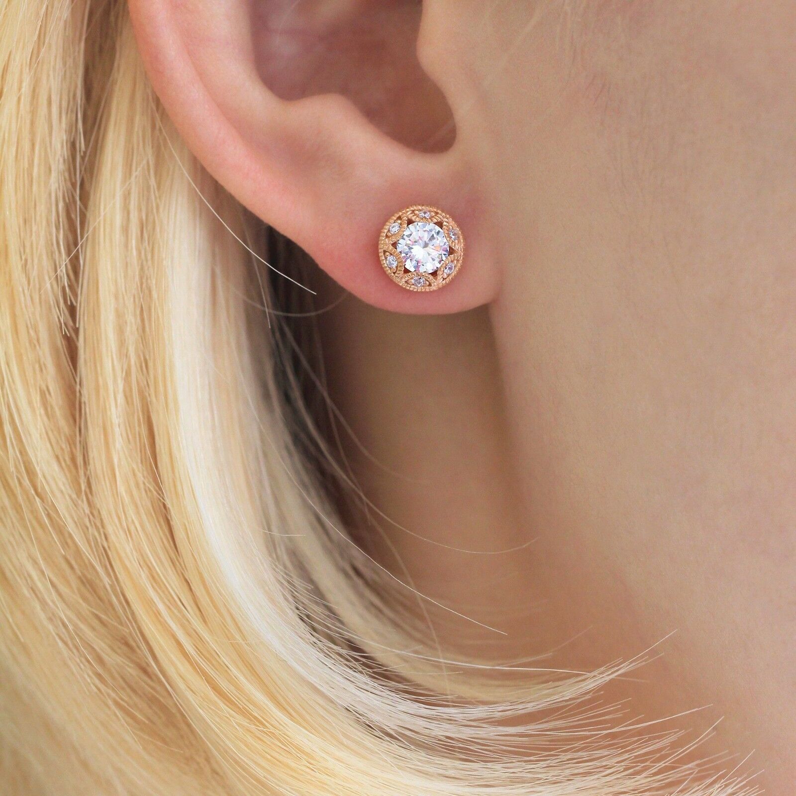 Art Deco Bridal Stud Earrings 0.5ct Round Cut VVS1 Diamond 14k Rose Gold Finish