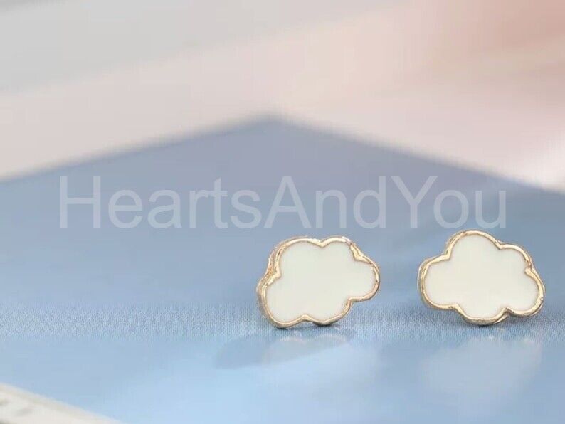 Clouds Stud Earrings for Women 14k Yellow Gold Plated