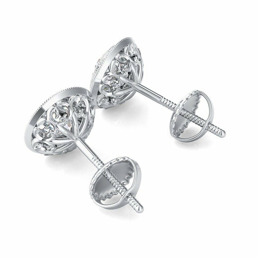 Milgrain Halo Stud Earrings 1.7ct Round Cut VVS1D Diamond 14k White Gold Finish