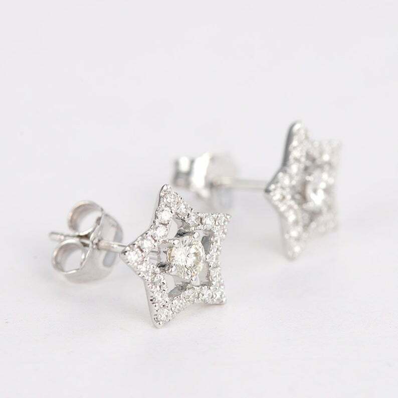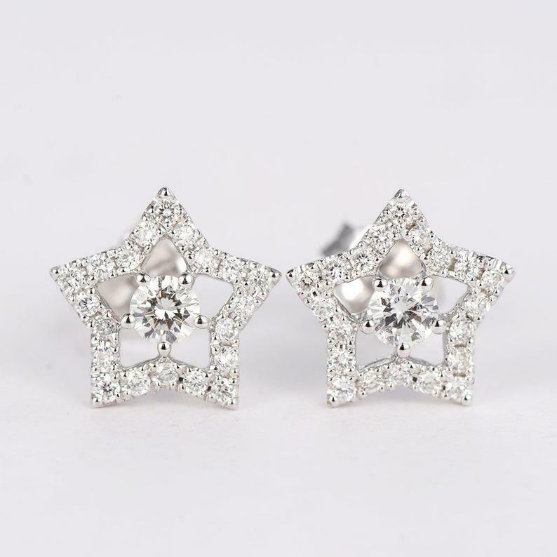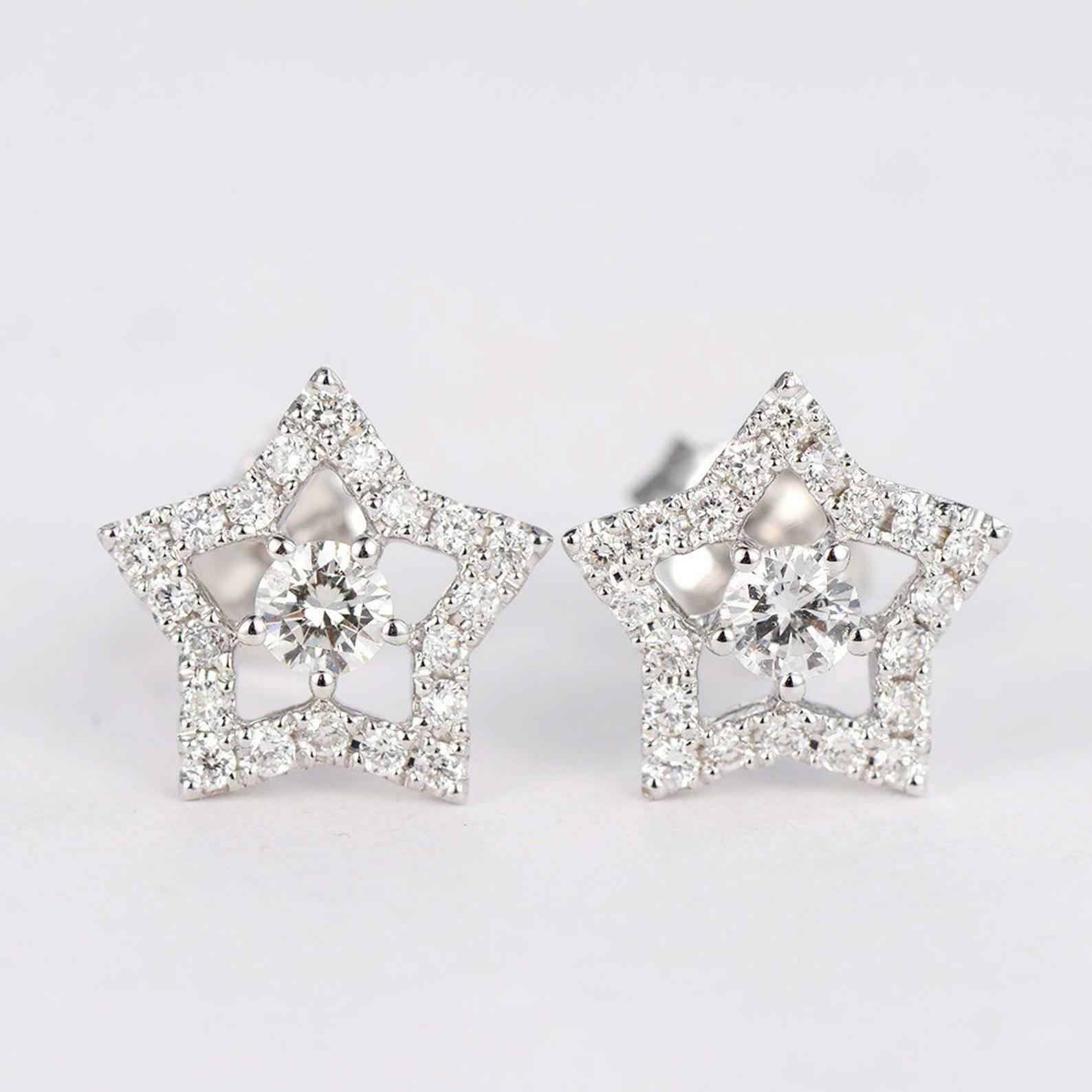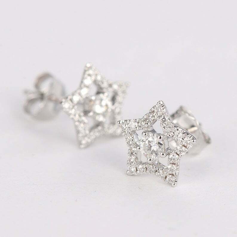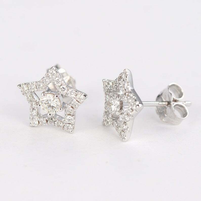 Open Star Design Stud Earrings 1.7ct Round Cut VVS1D Diamond 14k White Gold Over