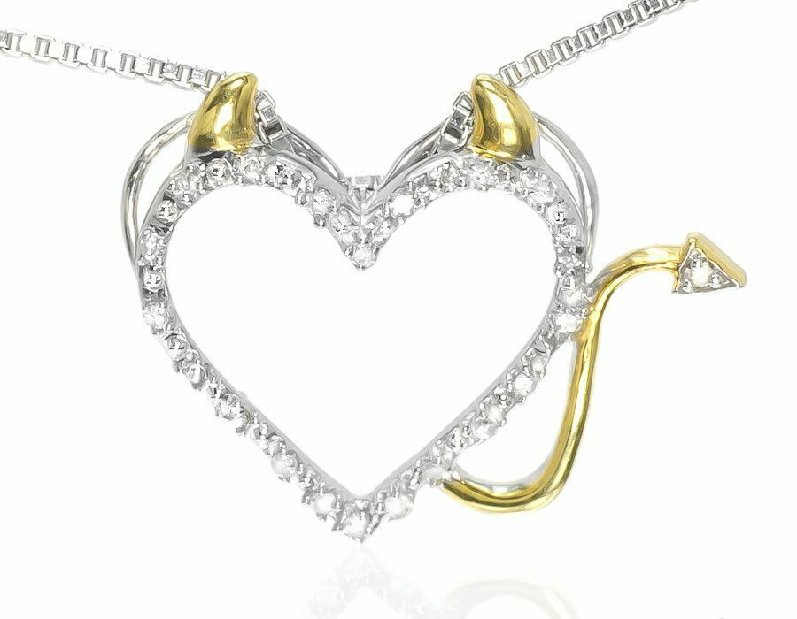 0.15ct Round Cut VVS1D Diamond Pendant Devil Heart 14k Two Tone Finish NO CHAIN