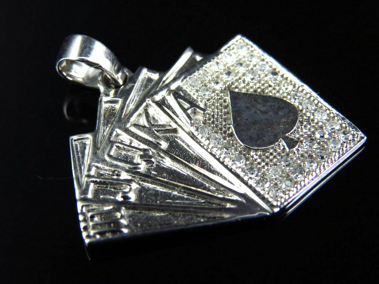 0.1ct Round Cut VVS1D Diamond Pendant Straight Poker Cards 14k White Gold Finish