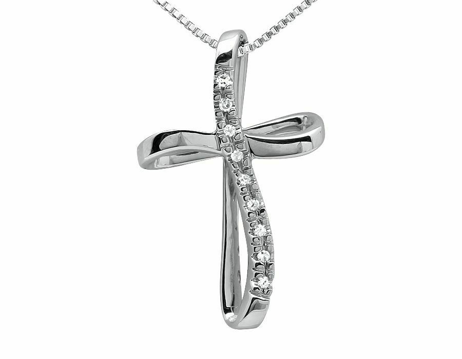 0.23ct Round Cut VVS1D Diamond Pendant Loop Cross 14k White Gold Finish NO CHAIN