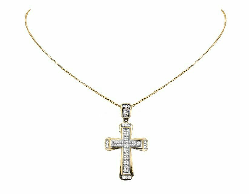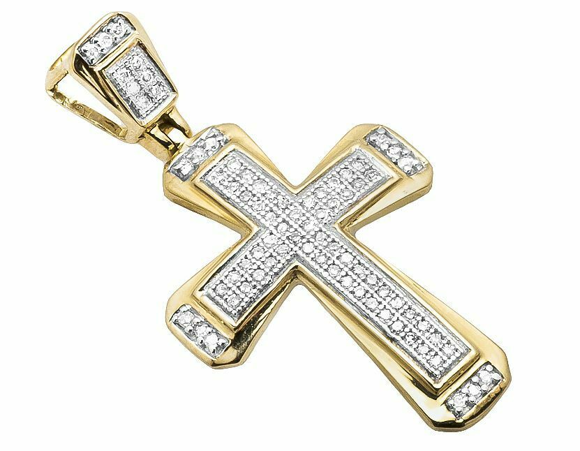 0.35ct Round Cut VVS1D Diamond Pendant Designer Cross Charm 14k Yellow Gold Over