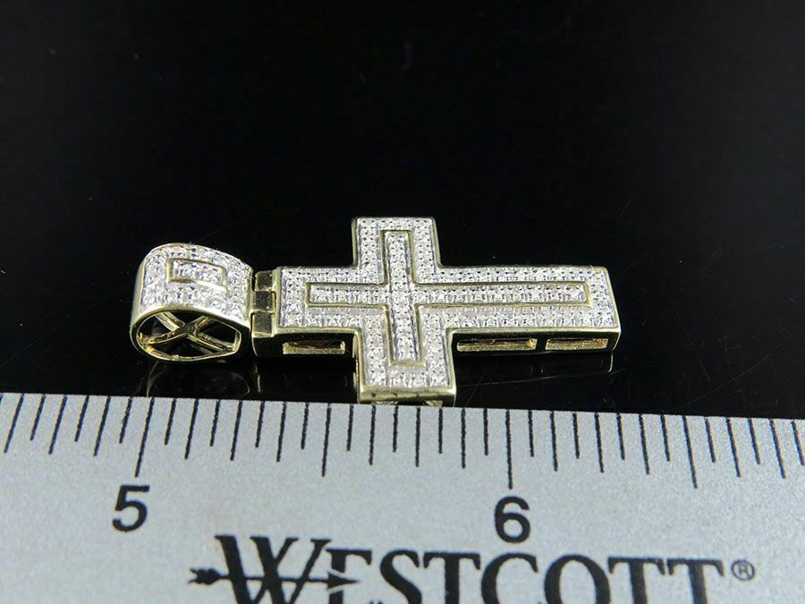 0.45ct Round Cut VVS1D Diamond Pendant Layered Cross Charm 14k Yellow Gold Finish