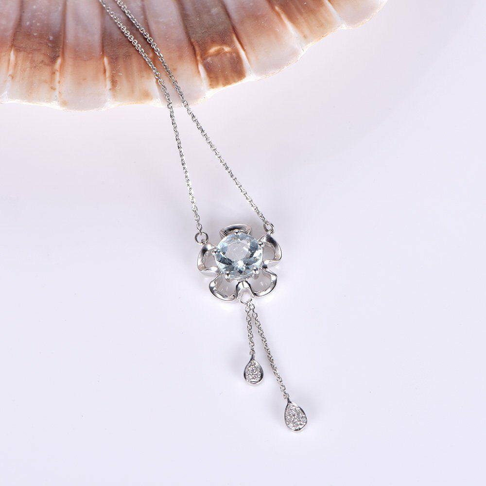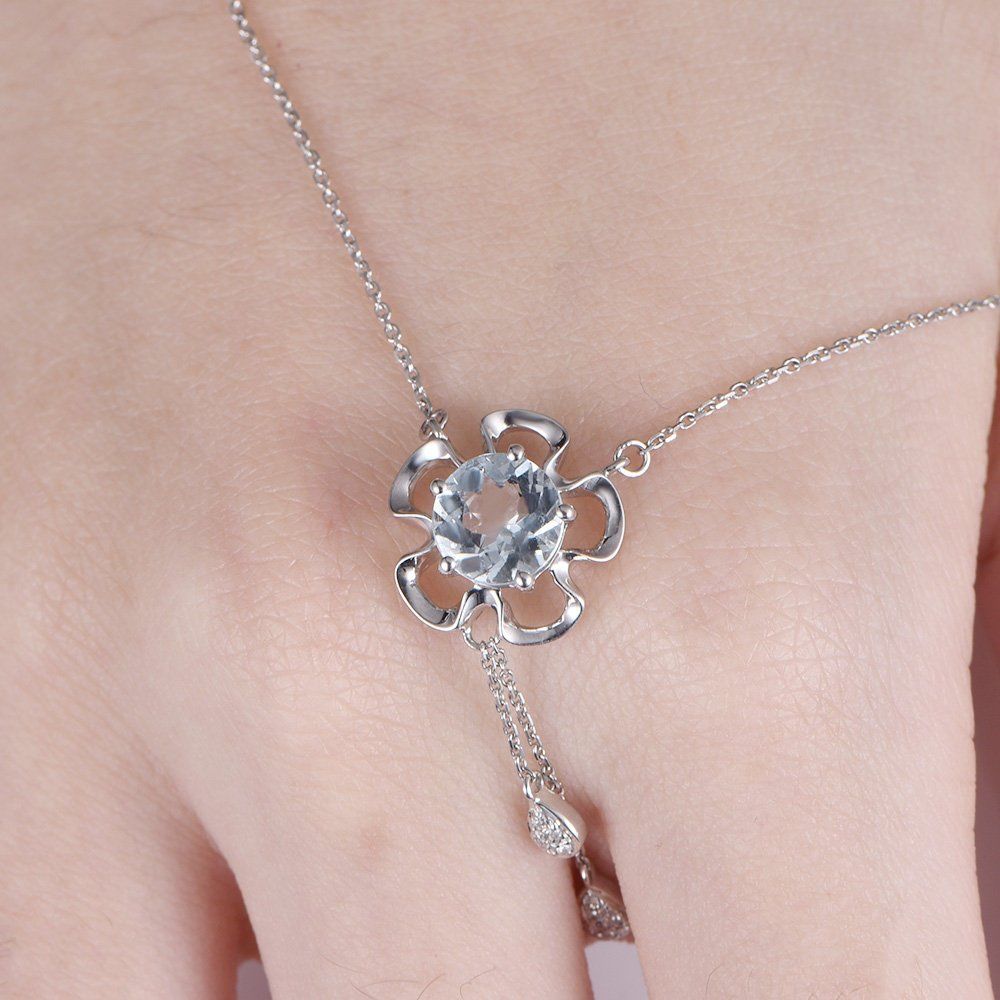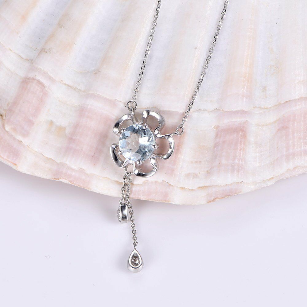 0.4ct Round Cut Blue Aquamarine Floral Pendant 14k White Gold Finish NO CHAIN