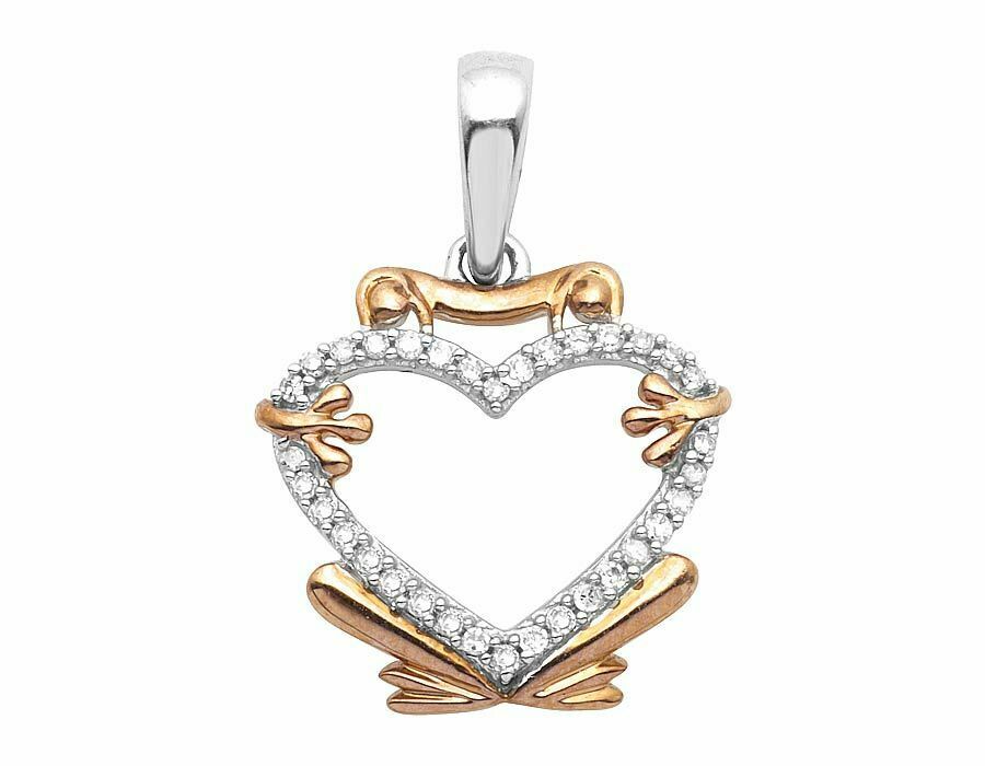 0.5ct Round Cut VVS1D Diamond Pendant Frog Heart 14k Two Tone Finish NO CHAIN