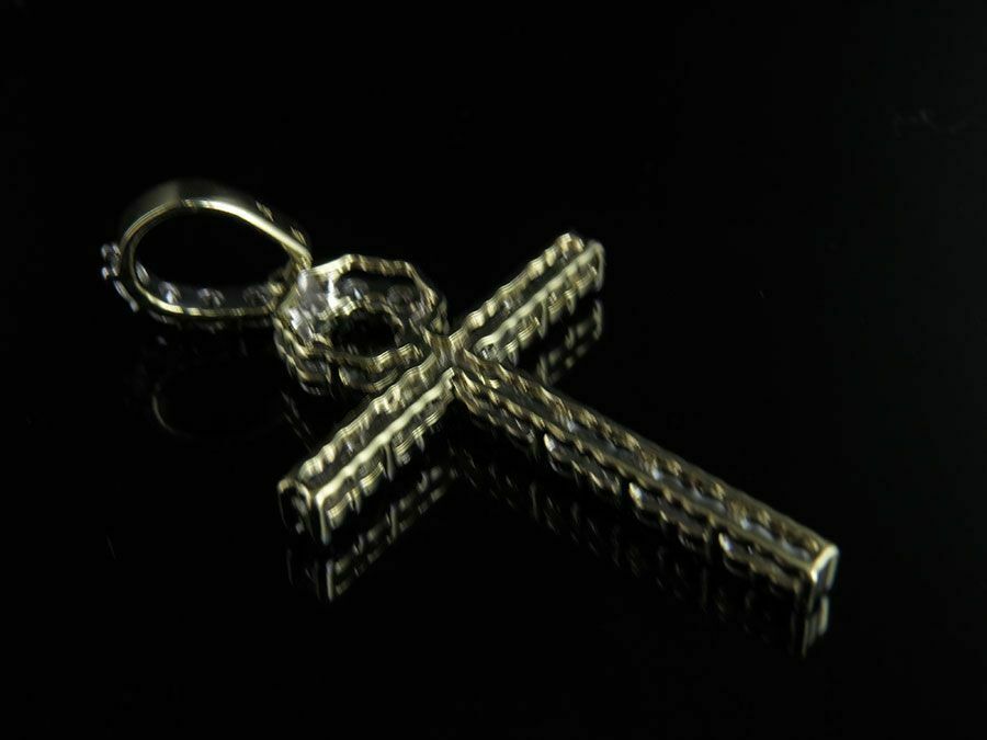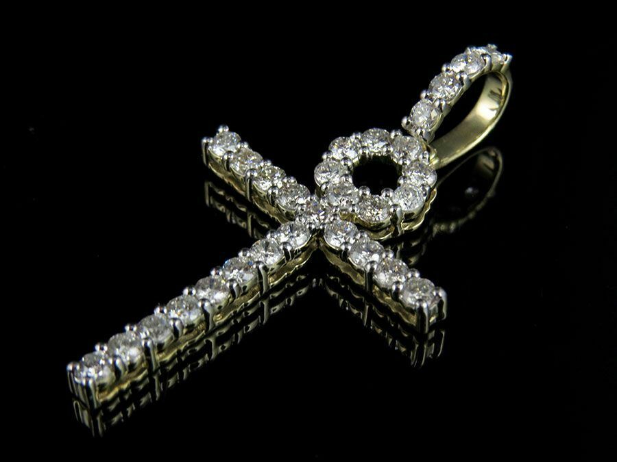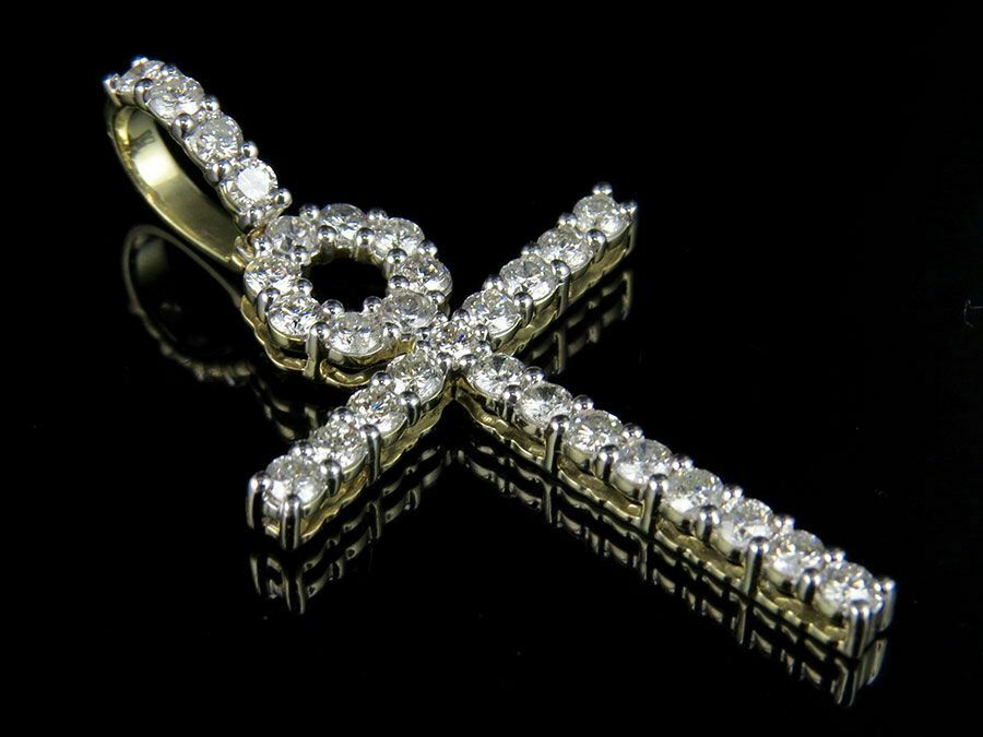 0.65ct Round Cut VVS1D Diamond Pendant Ankh Cross 14k YellowGold Finish NO CHAIN