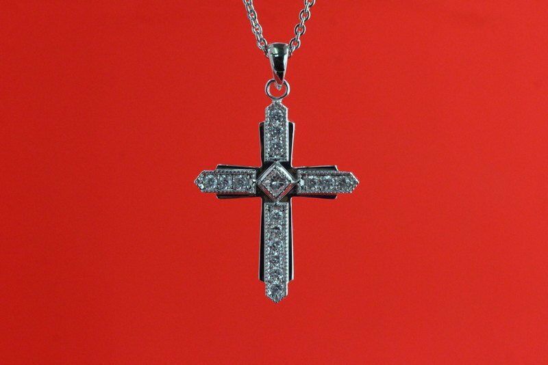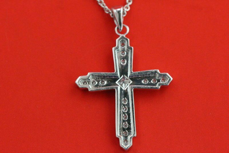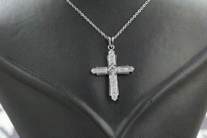 0.7ct Princess Cut Diamond Milgrain Cross Pendant 14k White Gold Finish NO CHAIN