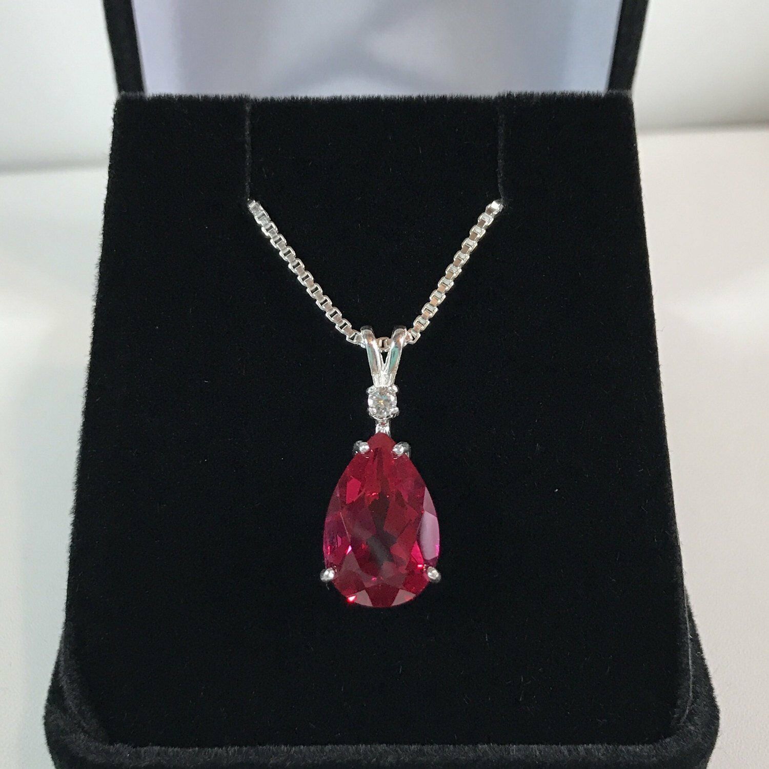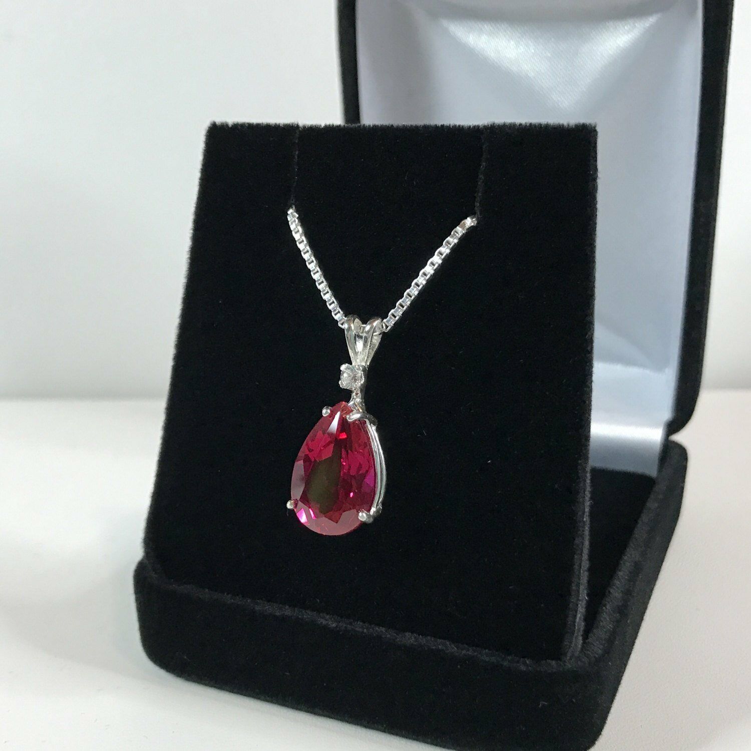 1.1ct Pear Cut Pink Ruby Solitaire Women Pendant 14k White Gold Finish NO CHAIN